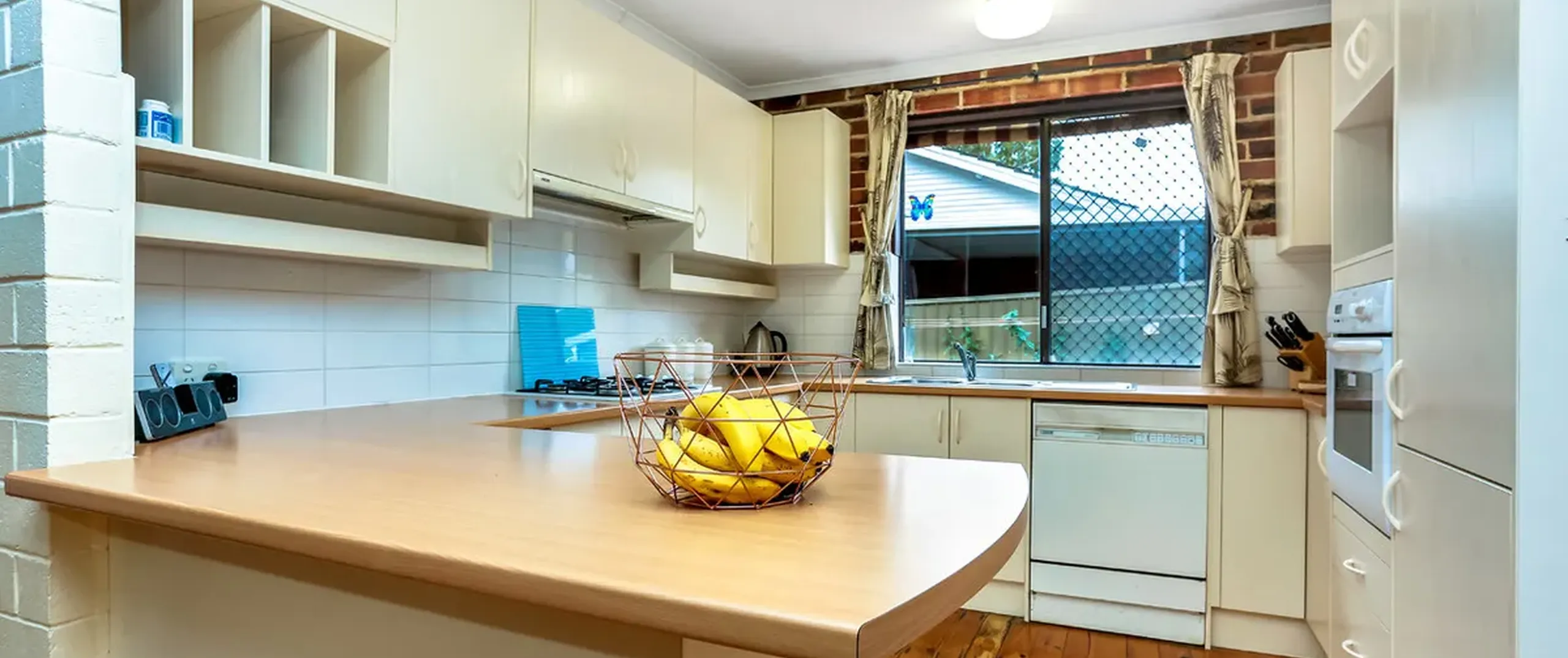 -Stylish kitchen with gas cooking and dining area adjacent kitchen