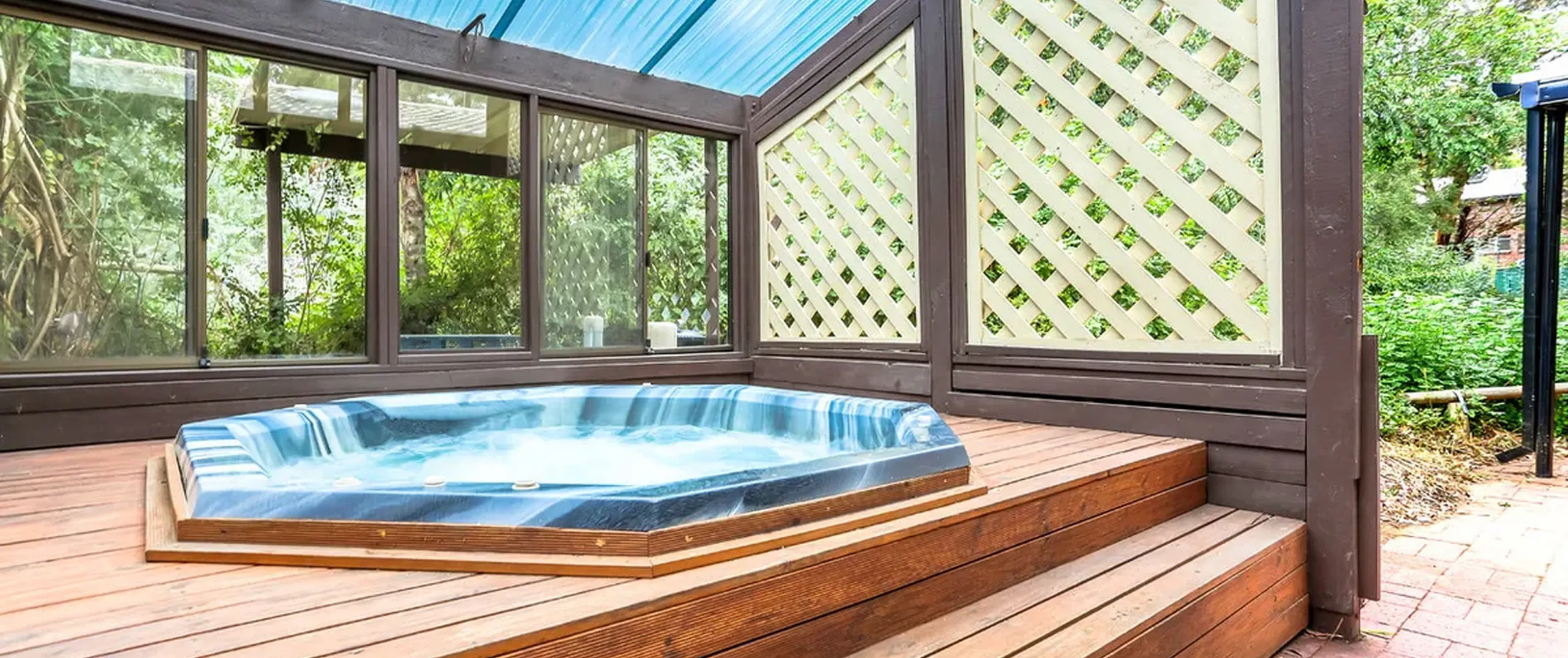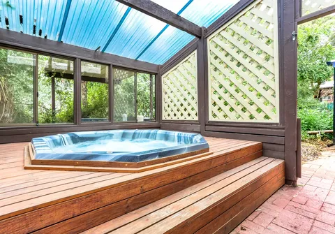 -Paved pergola and enclosed spa area