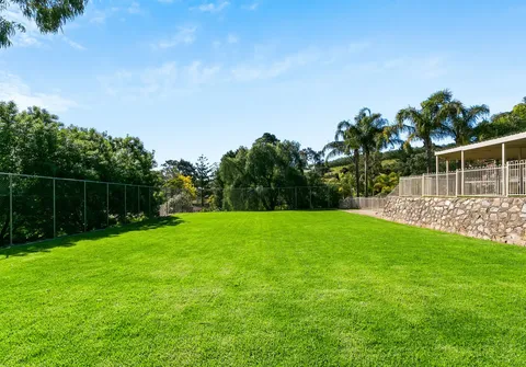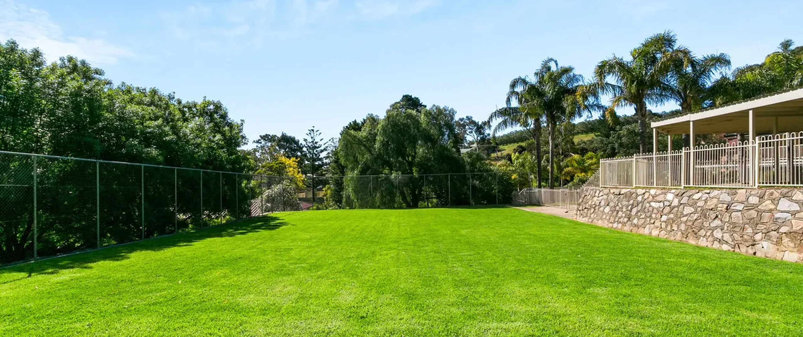 - Large, fenced grassed area. Fully irrigated (potential to convert back to a Tennis court)