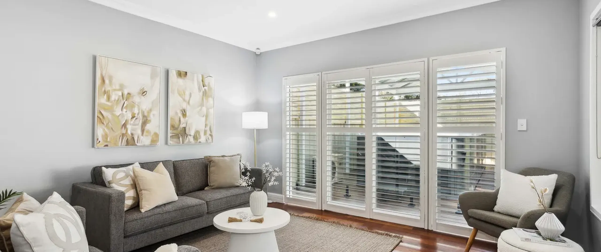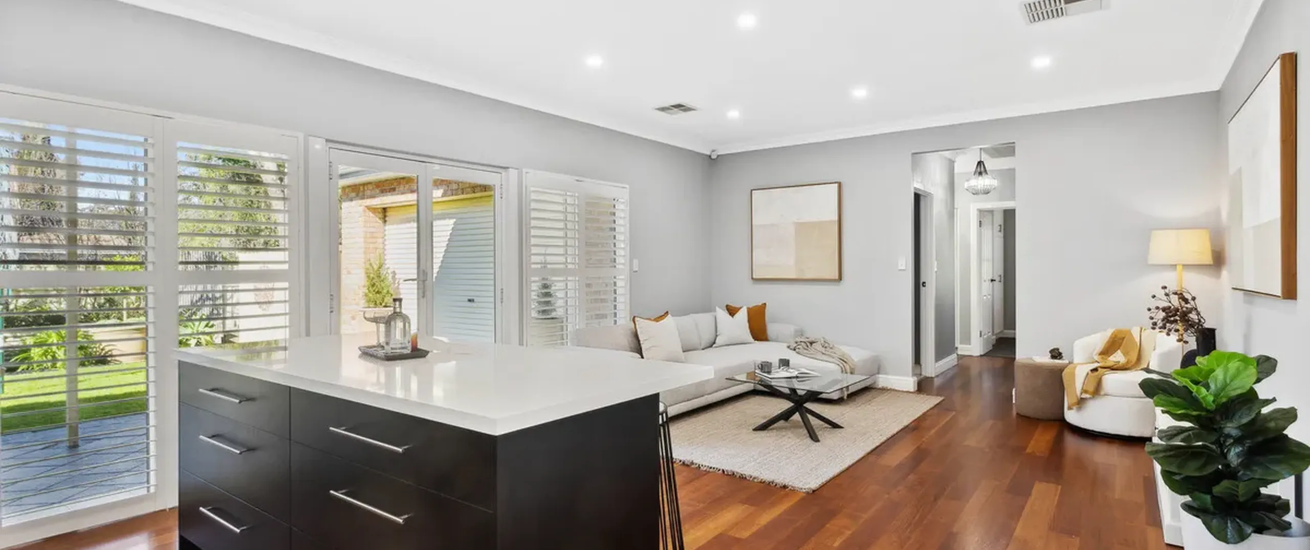 - Plantation shutters throughout