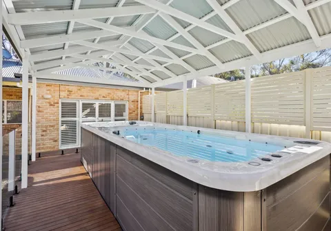 - Undercover swim spa with electric heating/cooling pumps