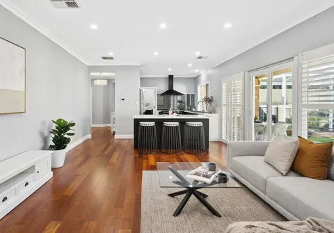 Torrens Titled and situated on an 854sqm (approximately) low maintenance corner allotment, the home offers 4 good sized bedrooms, 2 separate light filled living areas and a stunning kitchen featuring an 1100mm Belling free standing oven.