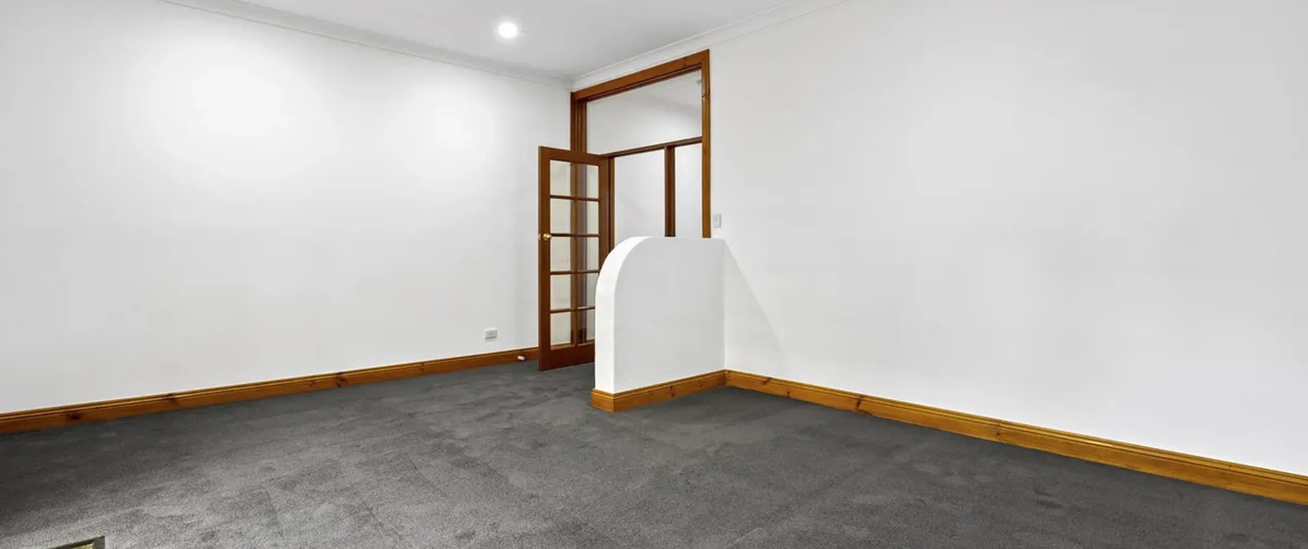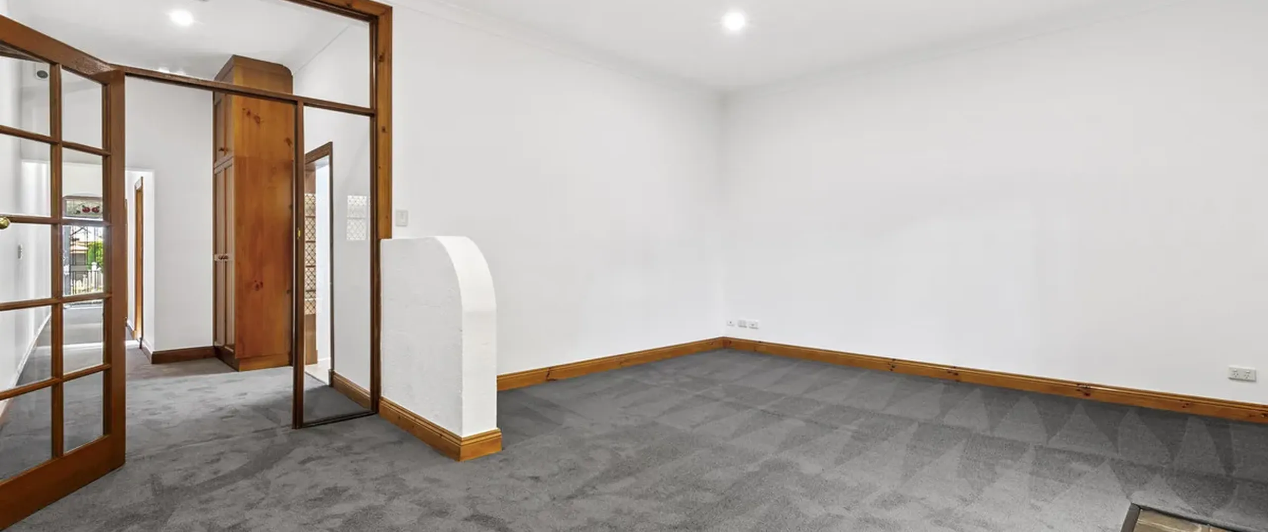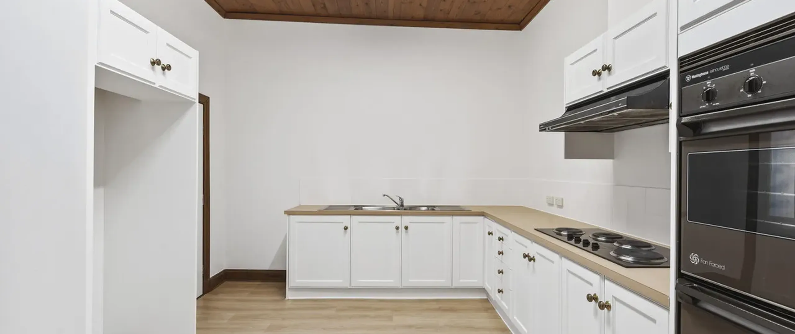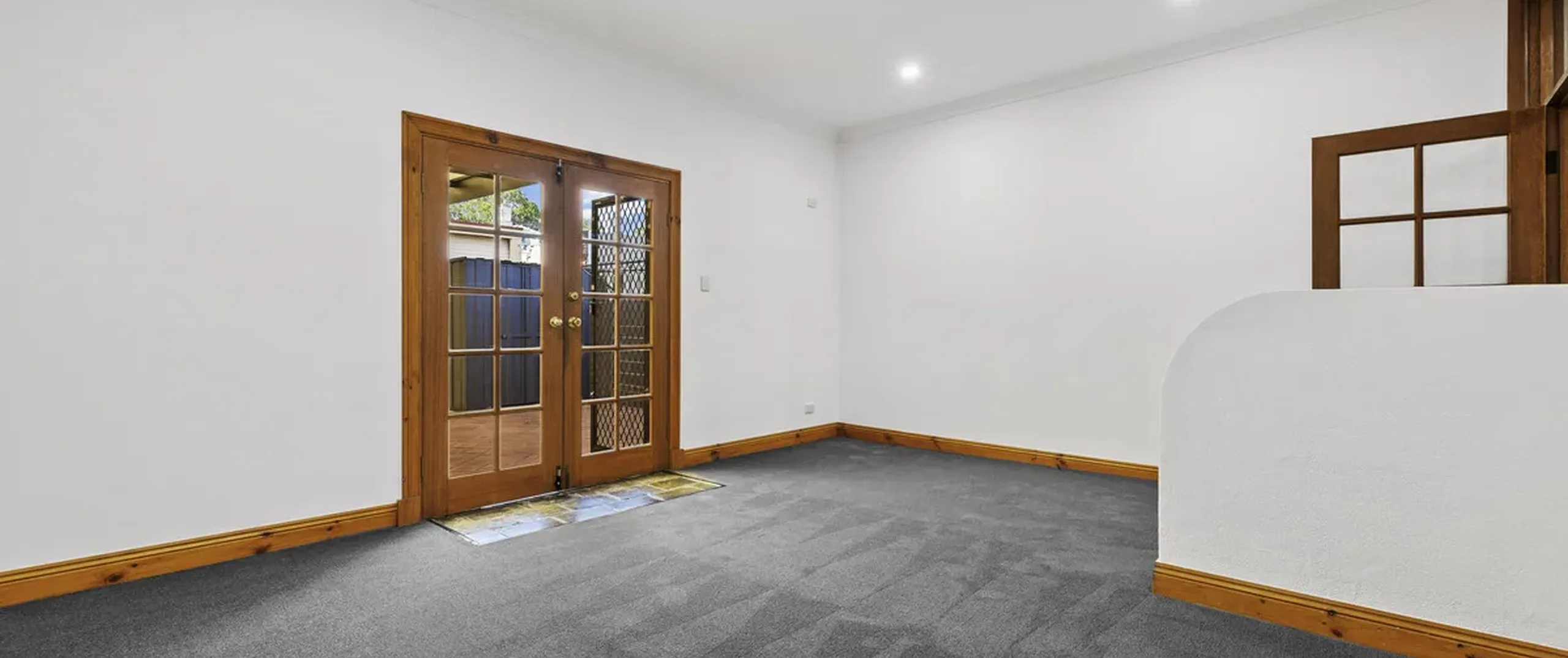 Soft natural light floods in and illuminates the generously proportioned kitchen and dining room, with French double doors that lead to the covered verandah/carport with valuable rear lane access. The kitchen is nestled under a tall timber-lined ceiling and features ample bench space, plenty of storage, a walk-in pantry and external access to a quaint side yard.
