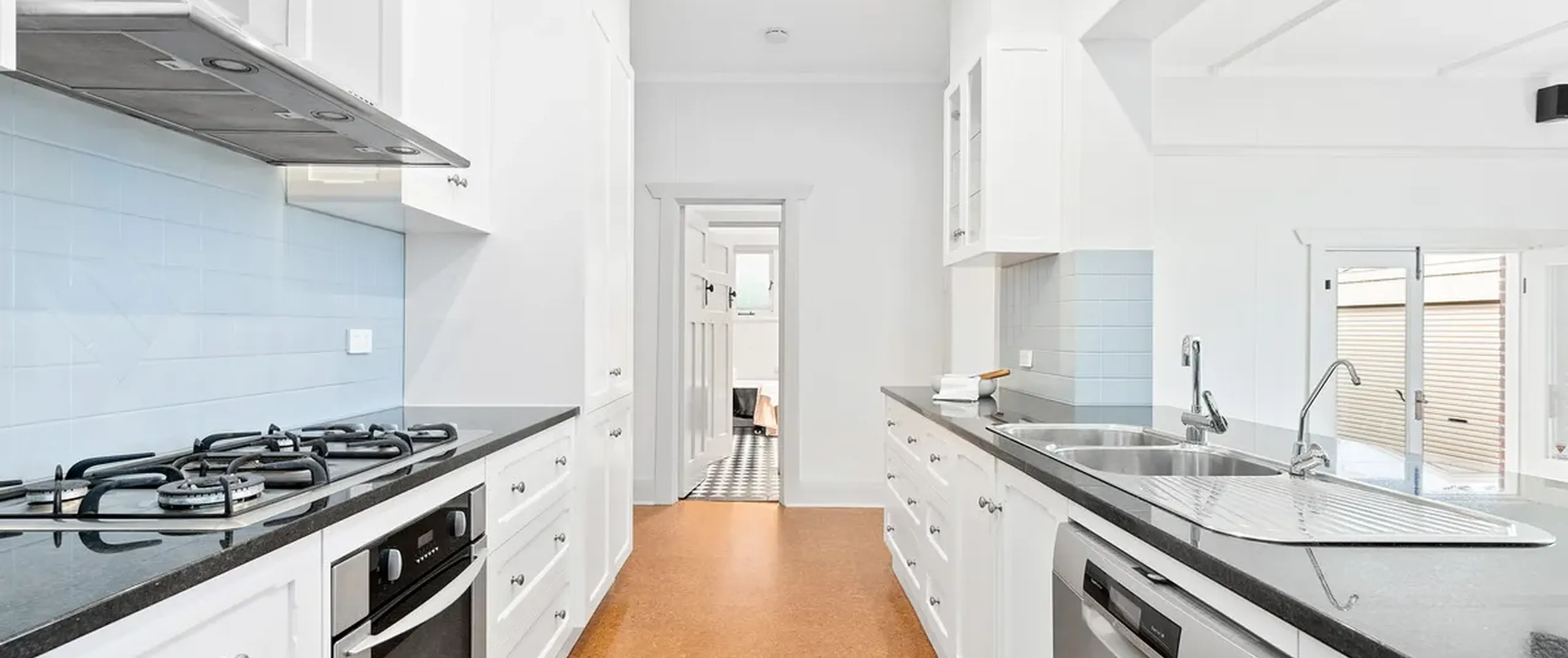 - Contemporary kitchen featuring ample cupboard and bench space, gas cooktop, water filter tap and stainless steel appliances including rangehood and dishwasher