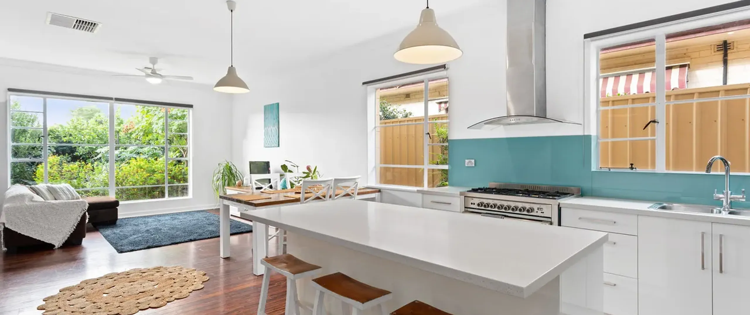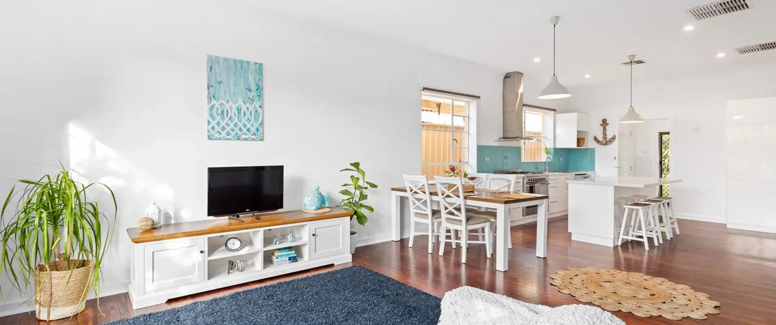 - Spacious open plan living and dining with ceiling fan and an abundance of natural light