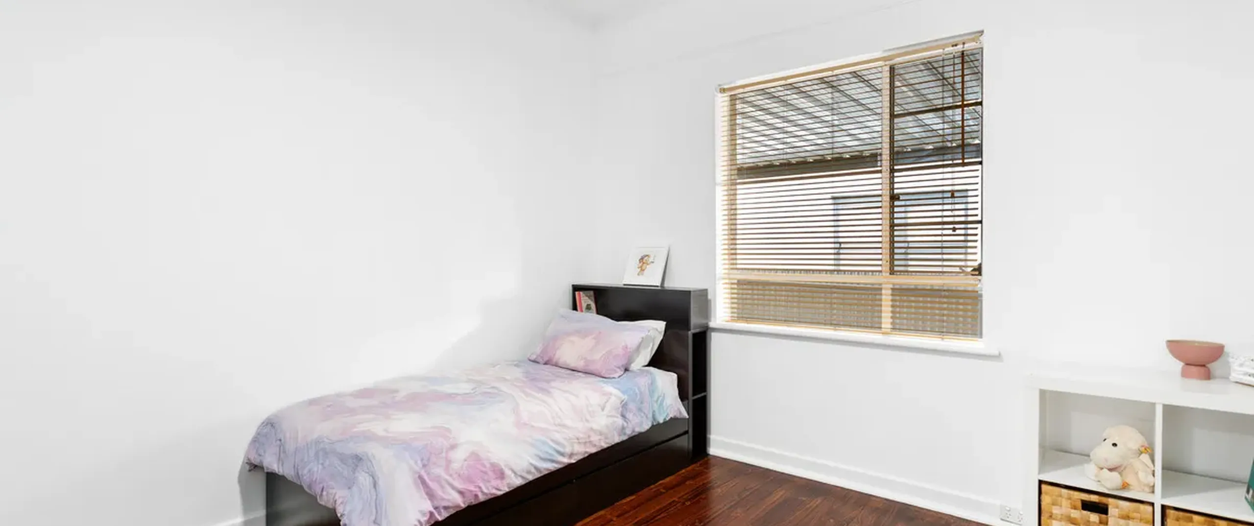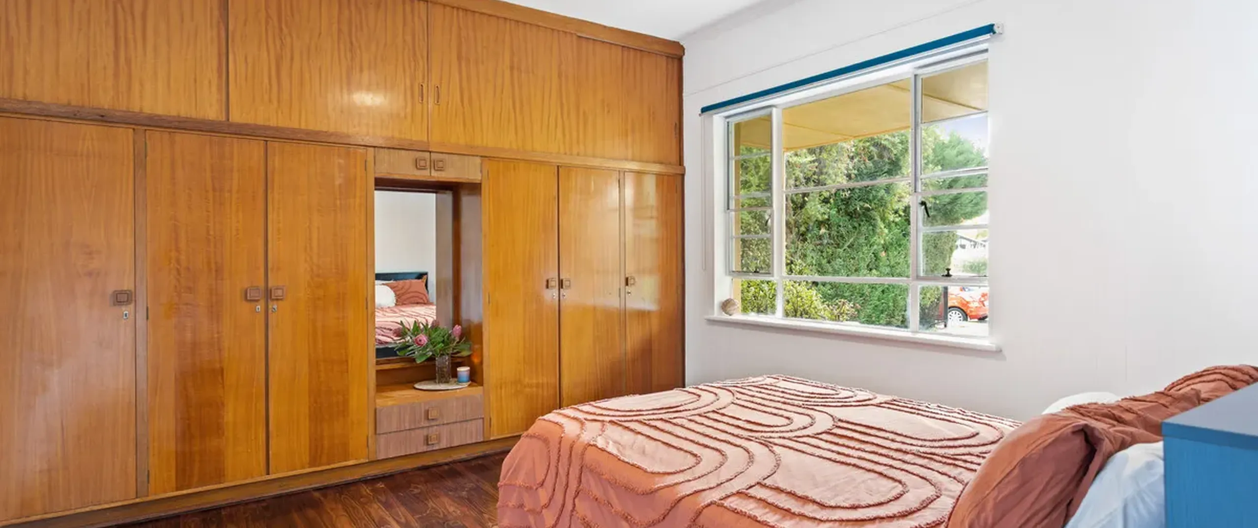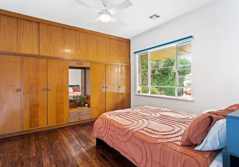- Large bedroom one complete with generous wall-length built-in robe and ceiling fan