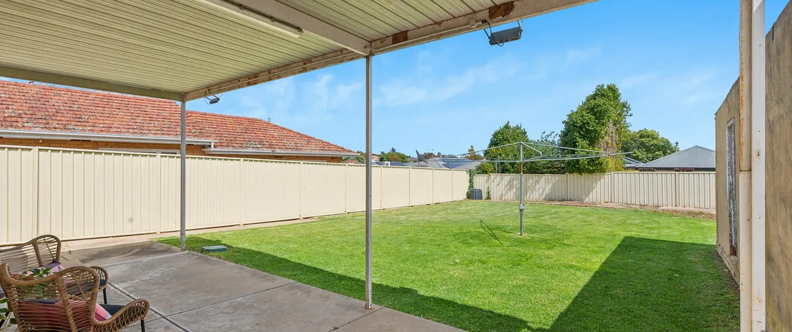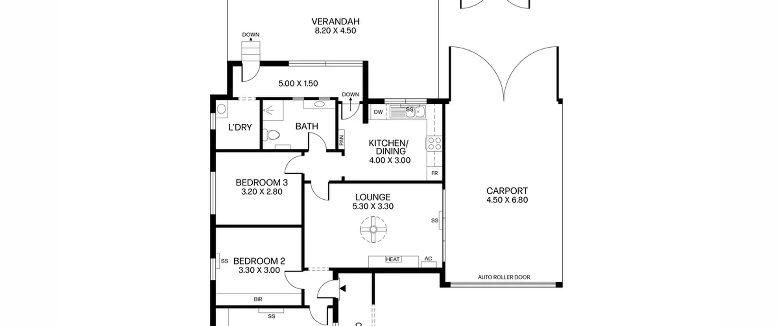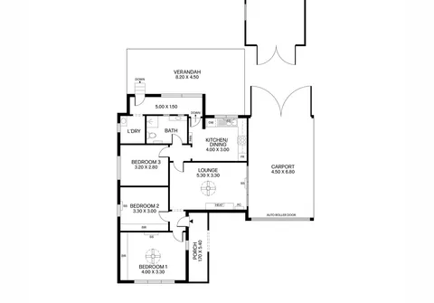 - Single carport with automatic roller door and drive through access to garage