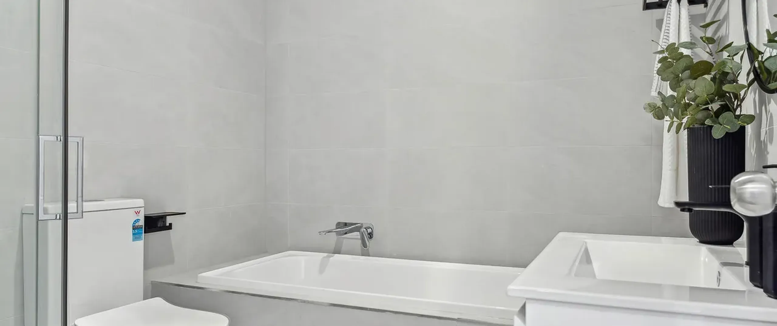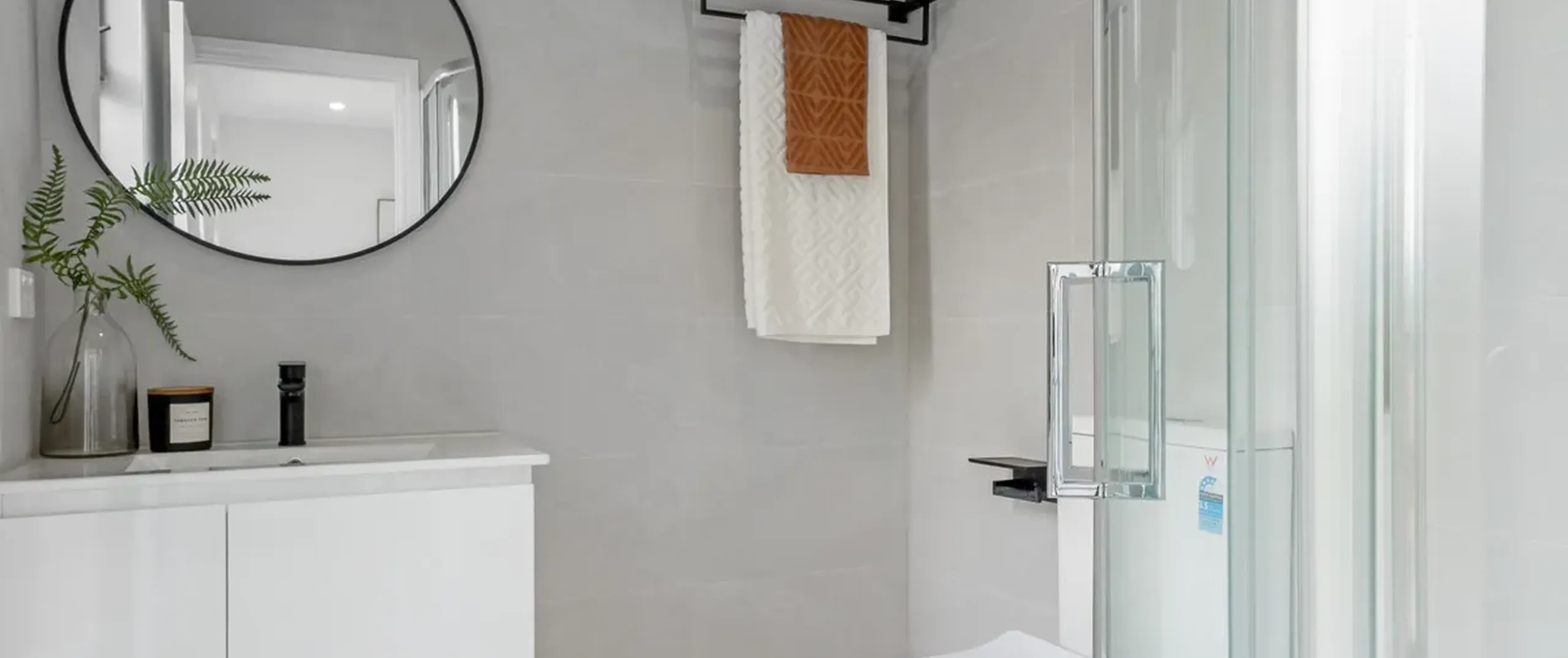 - Main bathroom with floor to ceiling tiles