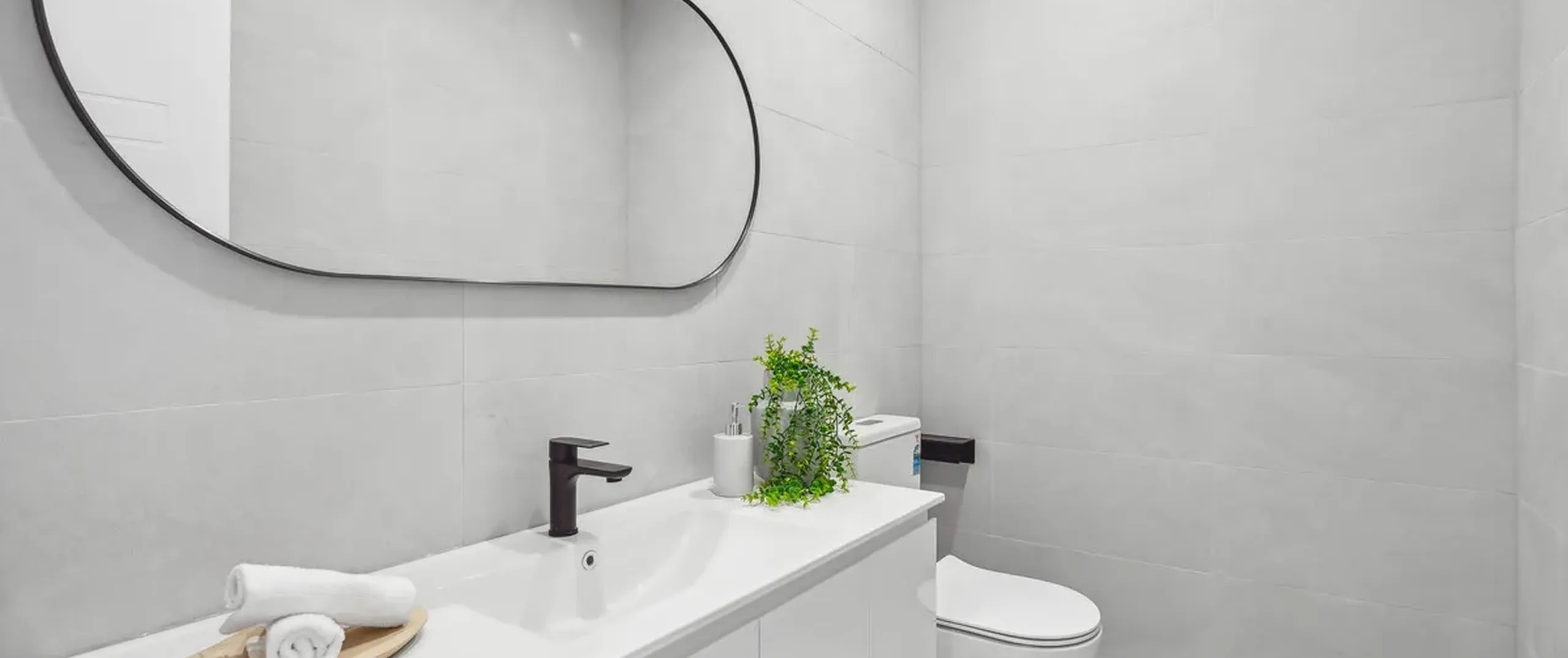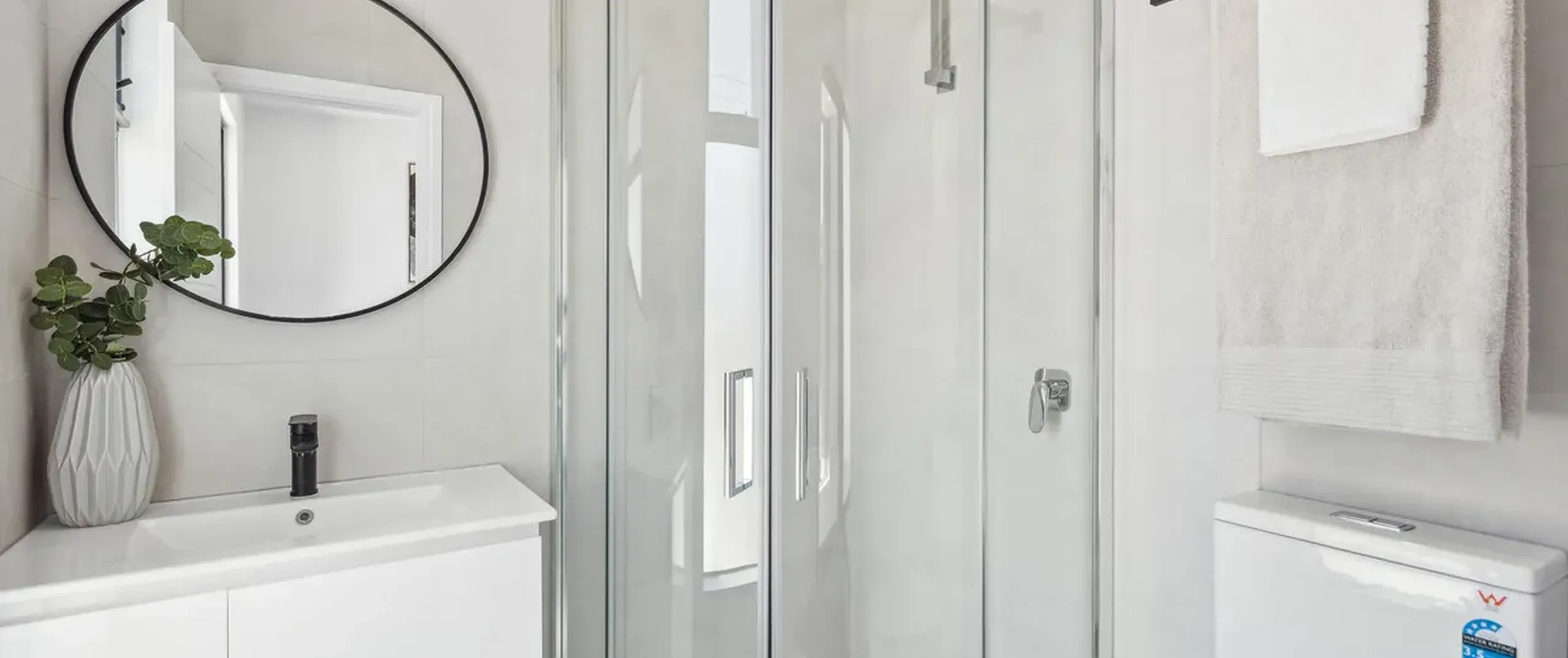 - Main bathroom with floor to ceiling tiles