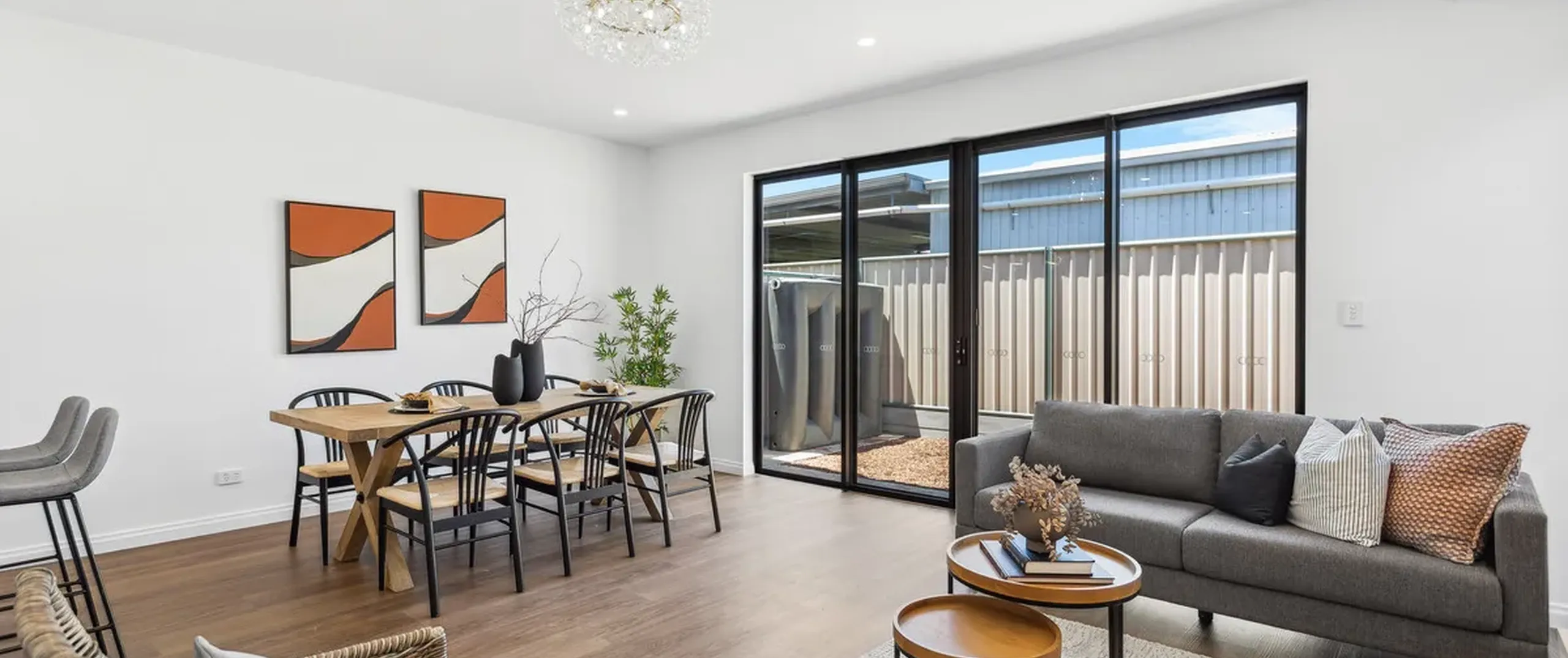 - Open plan kitchen, meals and living area