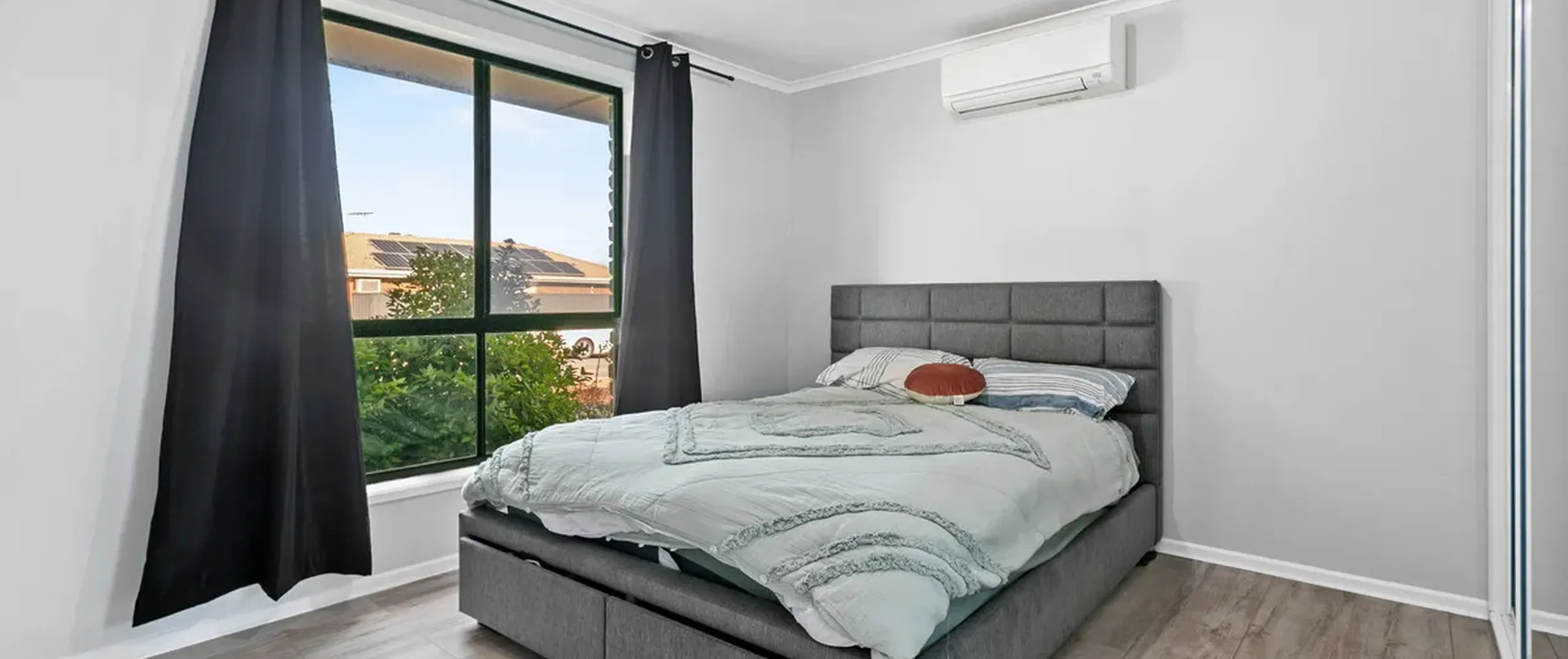- Master bedroom with built-in robe and split system air conditioner