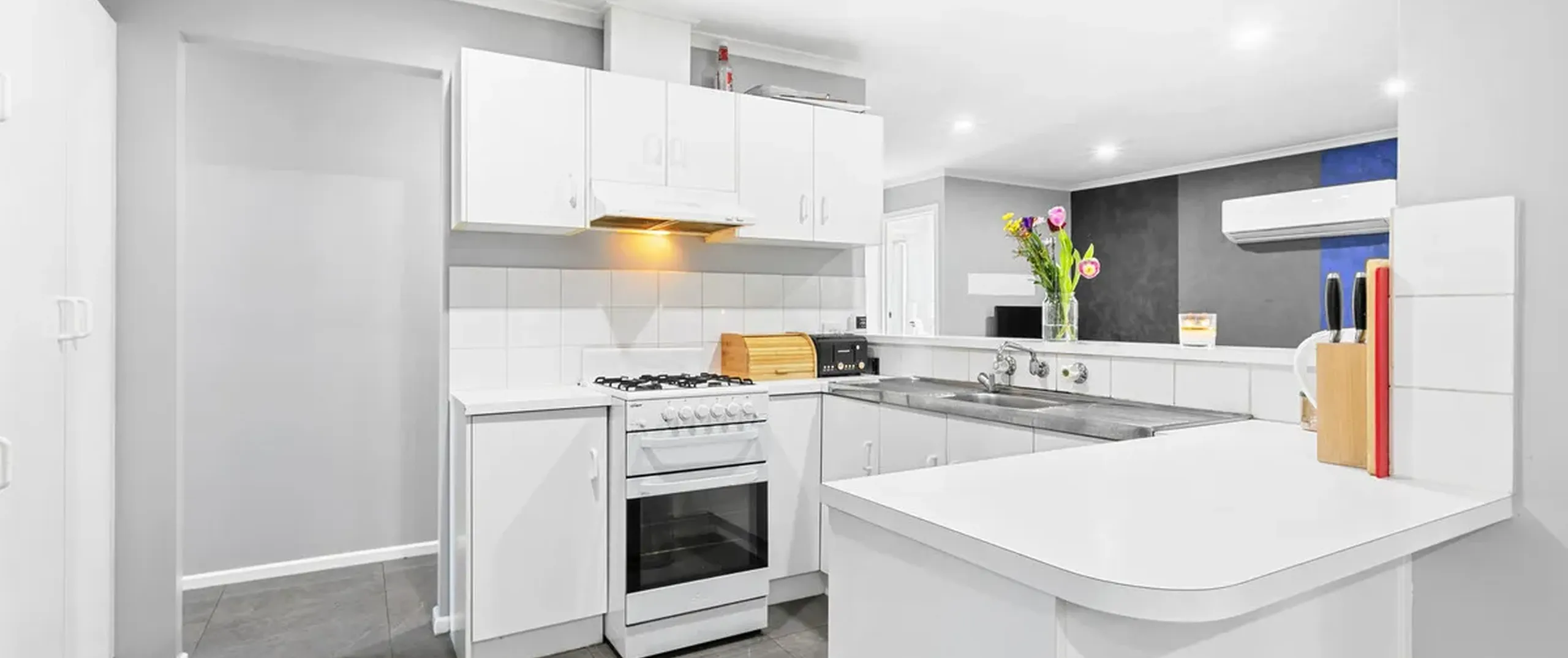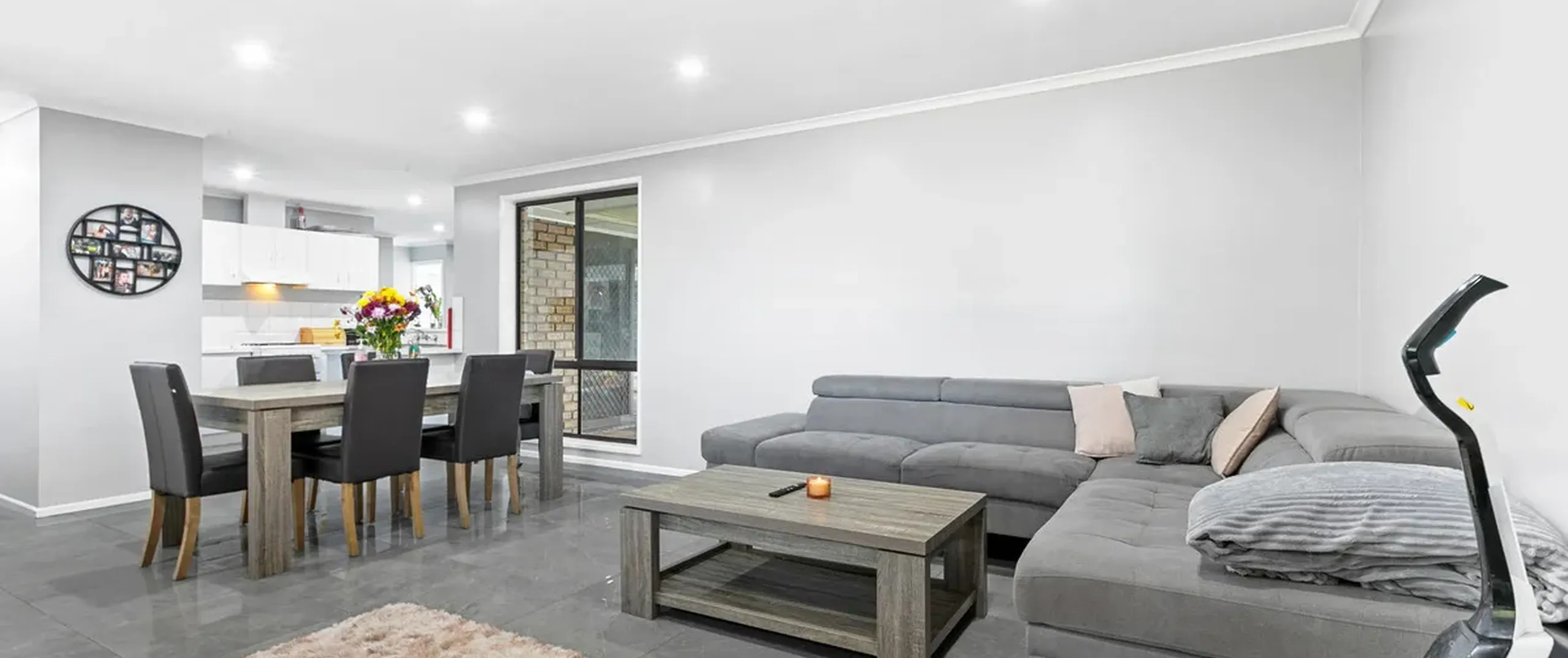 - Light filled open plan living, dining and kitchen area