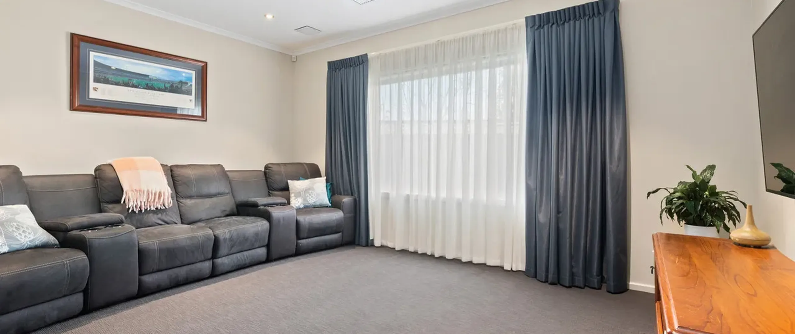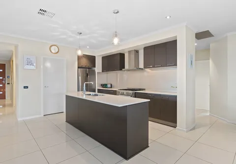 You can choose to spend your time relaxing in the home theatre or spend time hosting guests in the extra spacious open-plan living, kitchen and dining area. The stylish kitchen includes sweeping stone benches, stainless steel appliances, 5 burner gas cook top, large walk-in pantry and dishwasher.