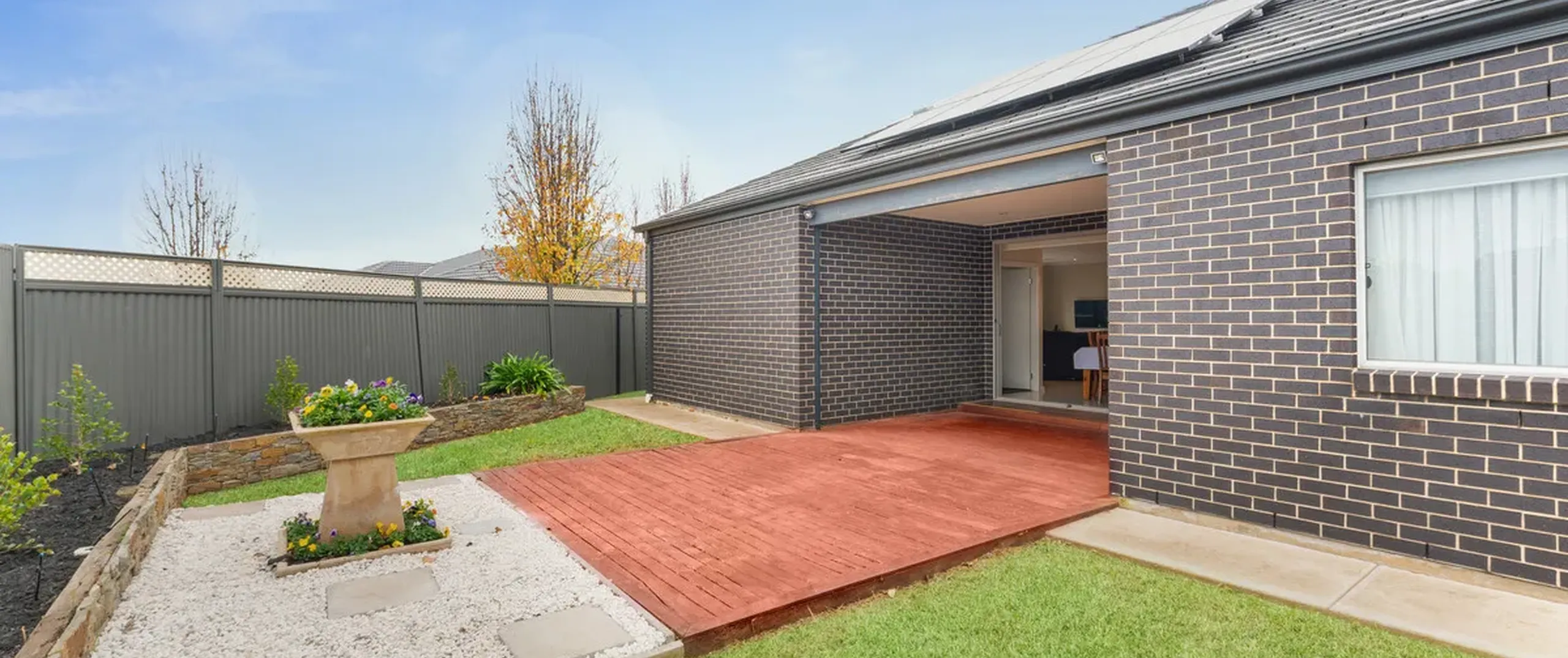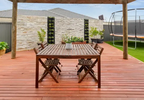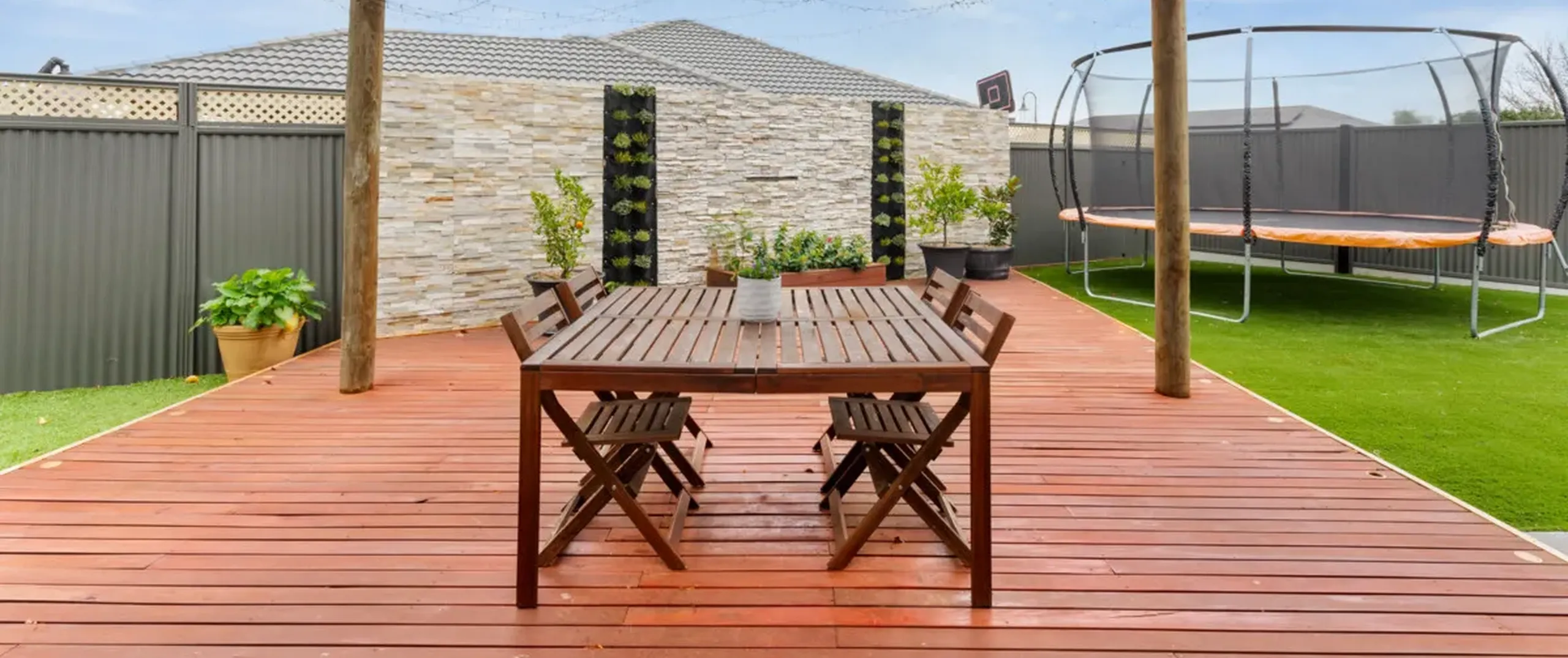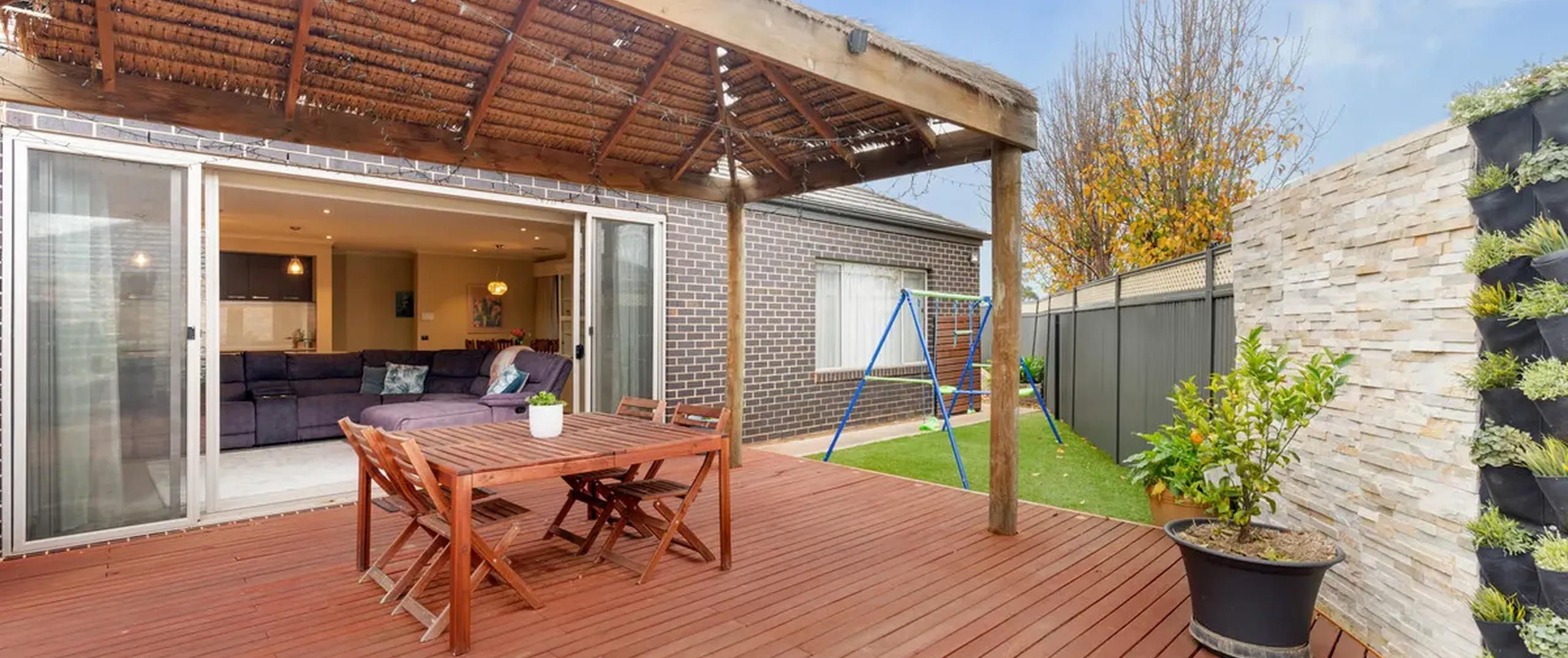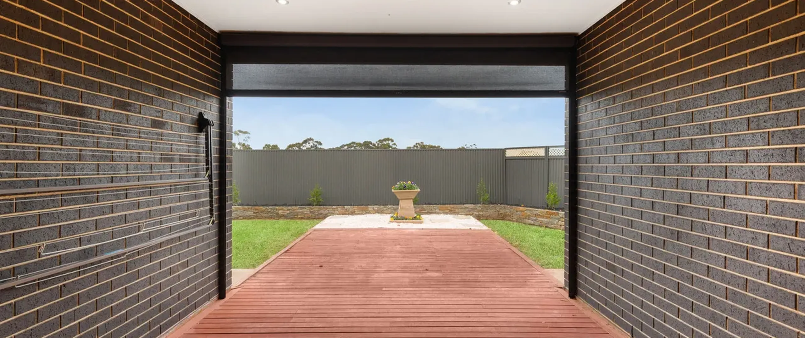 - Decked alfresco area with outdoor roller blind for year round comfort