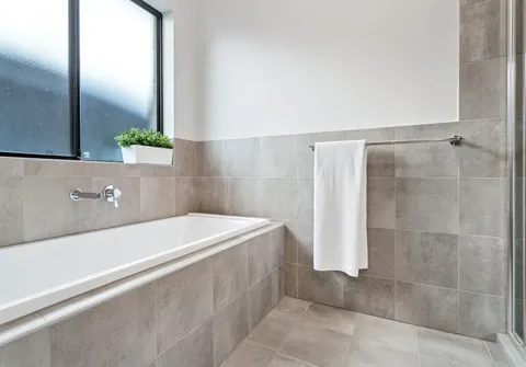- Contemporary three-way main bathroom with bath, shower, powder room, and toilet