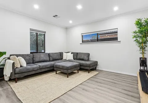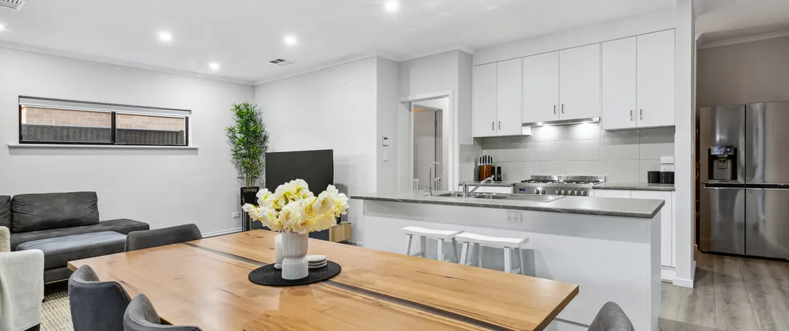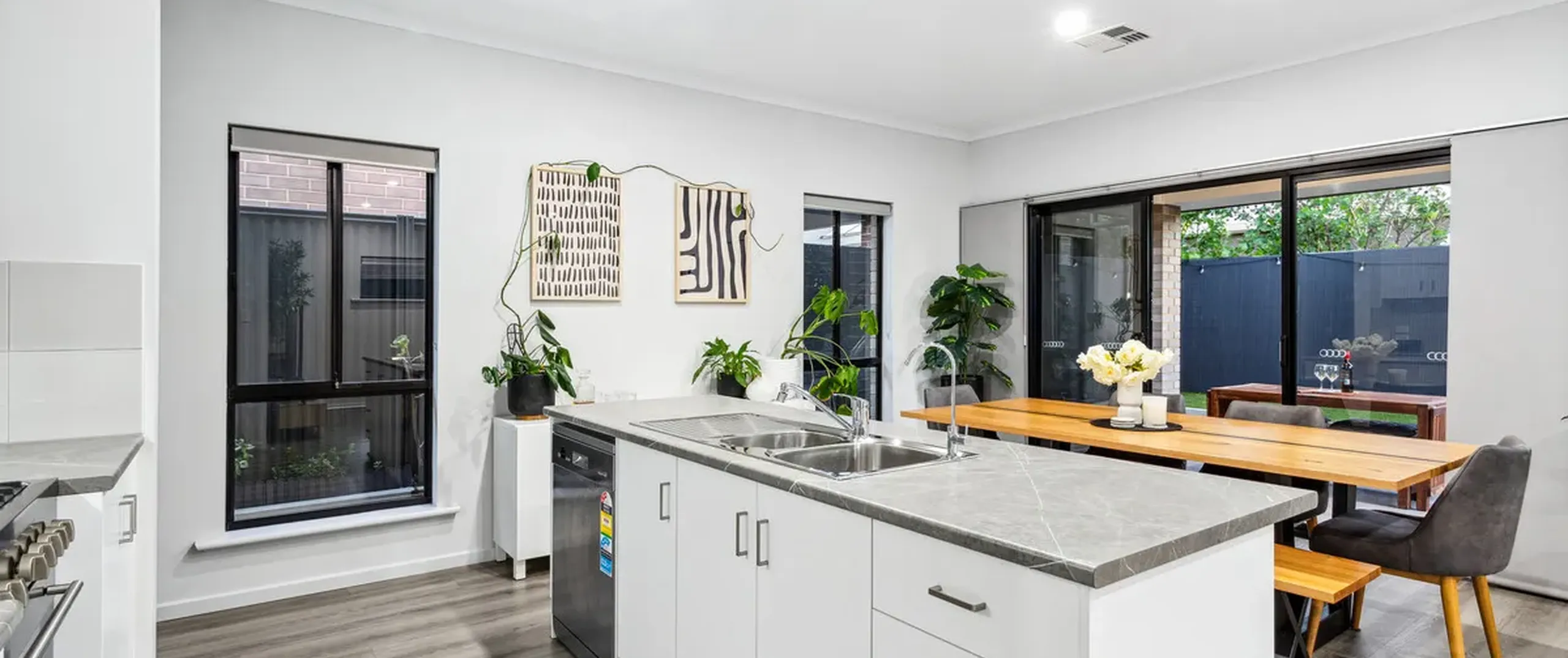 From the moment you arrive, the neutral-coloured facade sets a warm and inviting tone. Step inside, and you'll be greeted by high ceilings, LED downlights, and stylish on-trend flooring that flows throughout the home, creating a bright and contemporary feel.