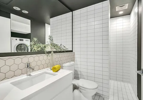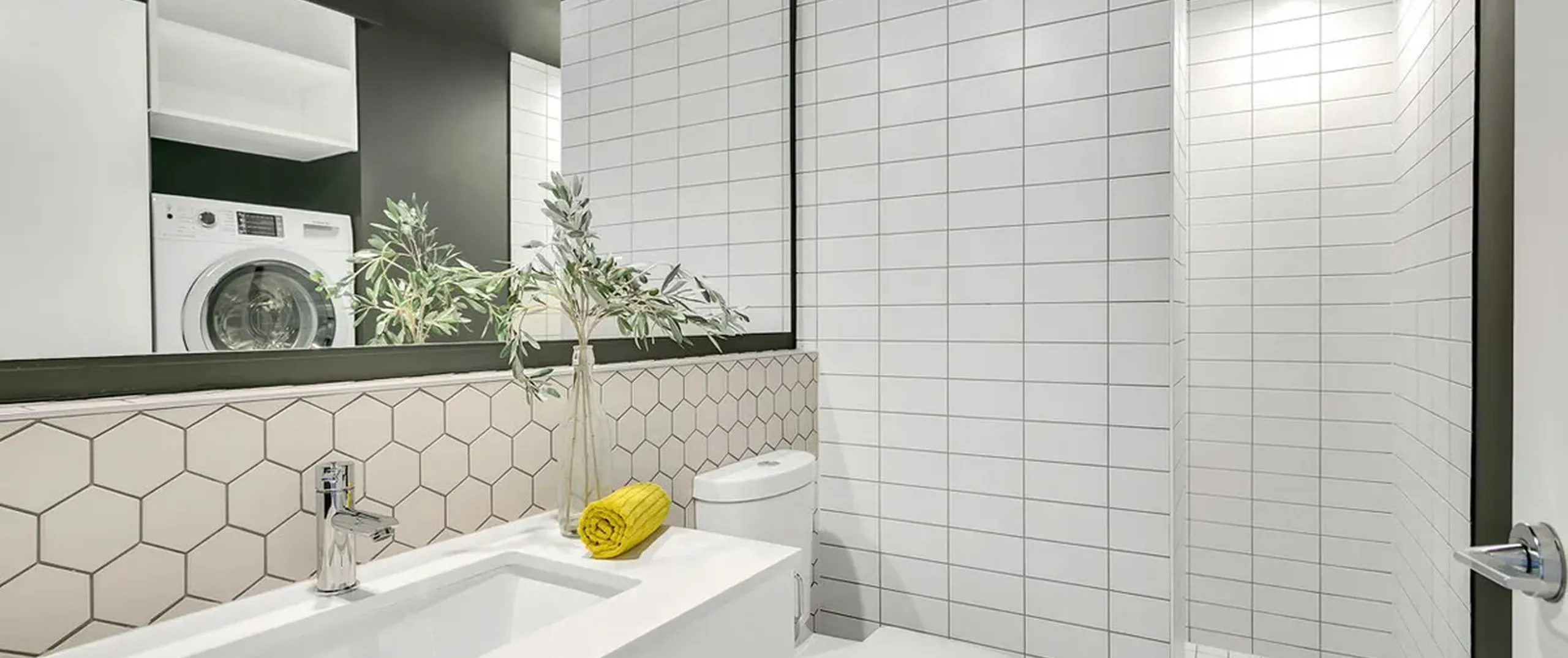- Stylishly designed bathroom incorporating European laundry comprising of Bosch Series 6 Washer/Dryer combo