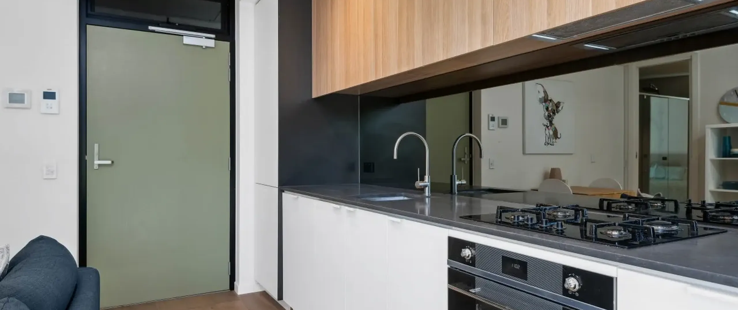 - Inviting balcony with double-glazed sliding door connection to open plan living