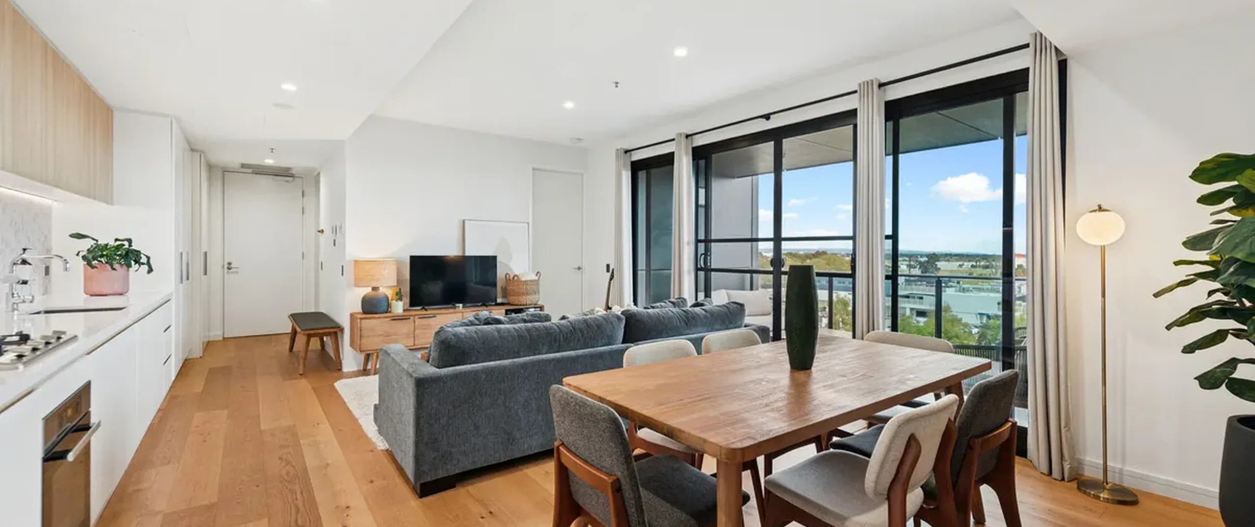 - Bright and spacious open plan living, dining and kitchen area with seamless access to a private balcony
