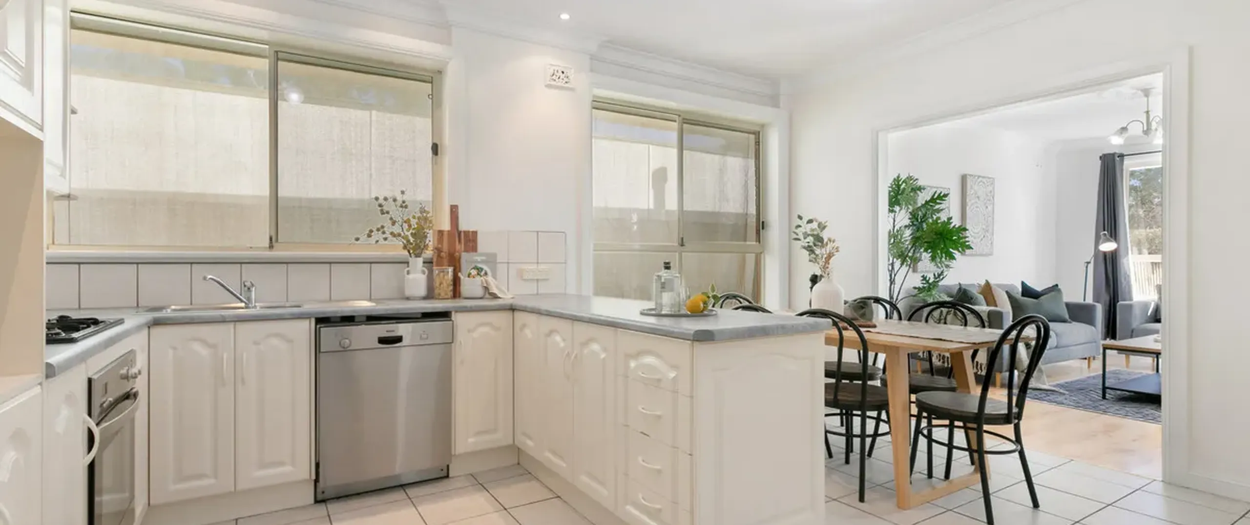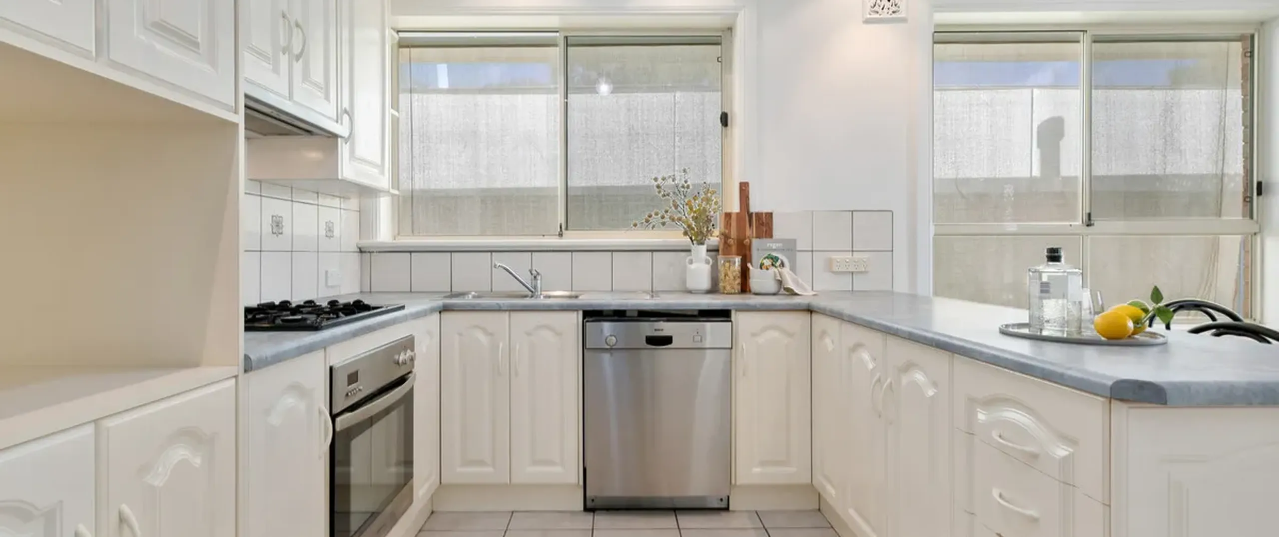 - Timeless kitchen complete with an abundance of cupboard and bench space and stainless steel appliances including dishwasher and gas cooktop