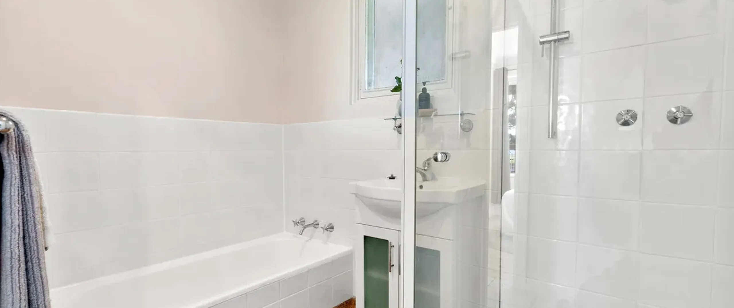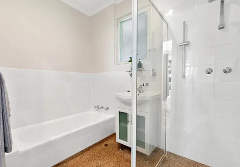 - Bright main bathroom with separate bath and shower