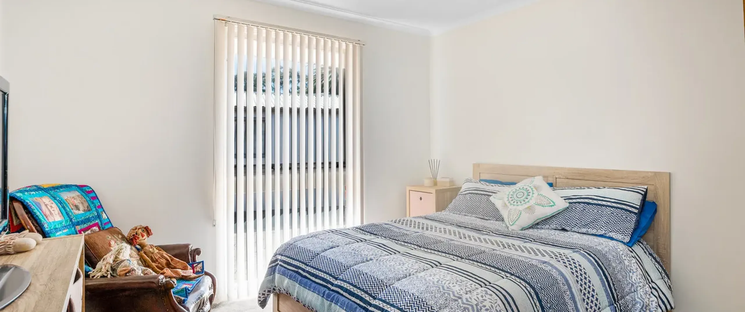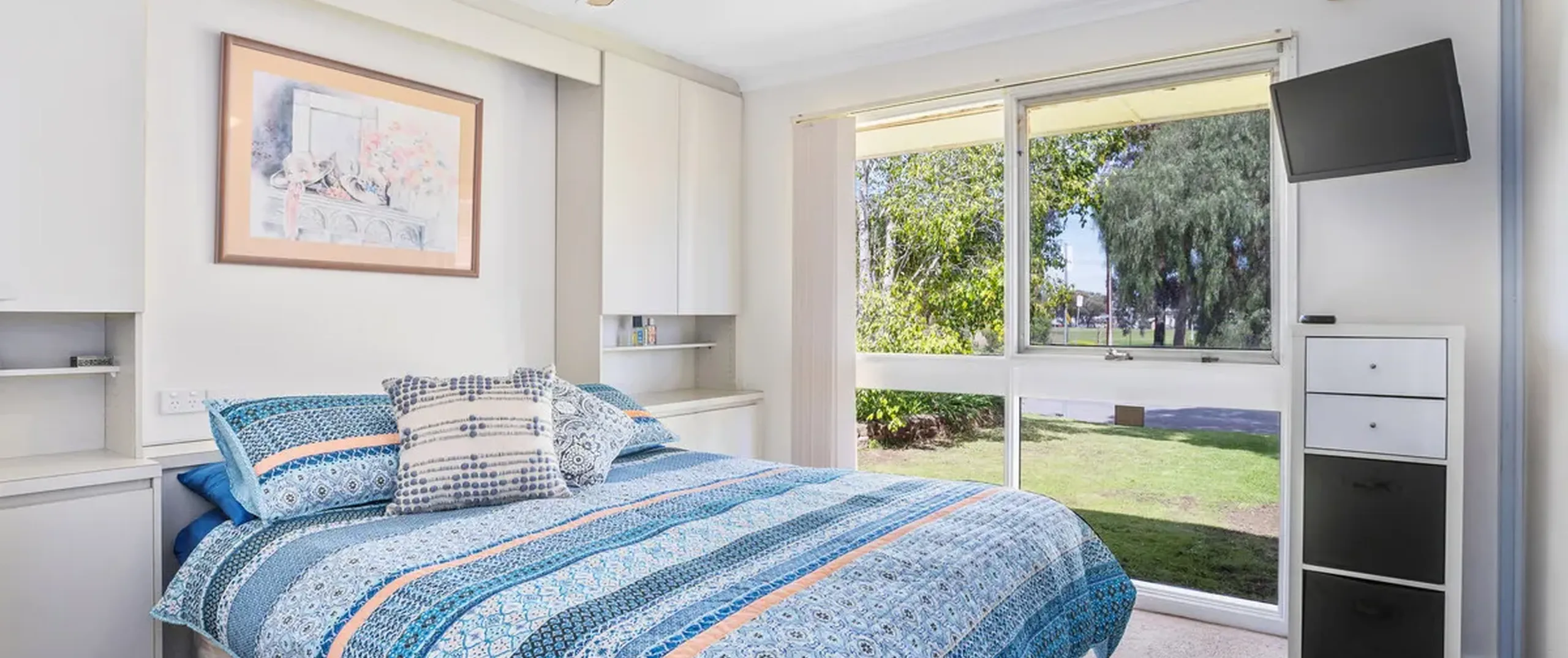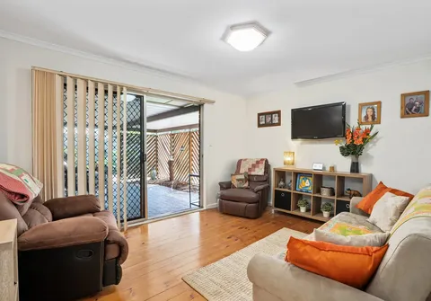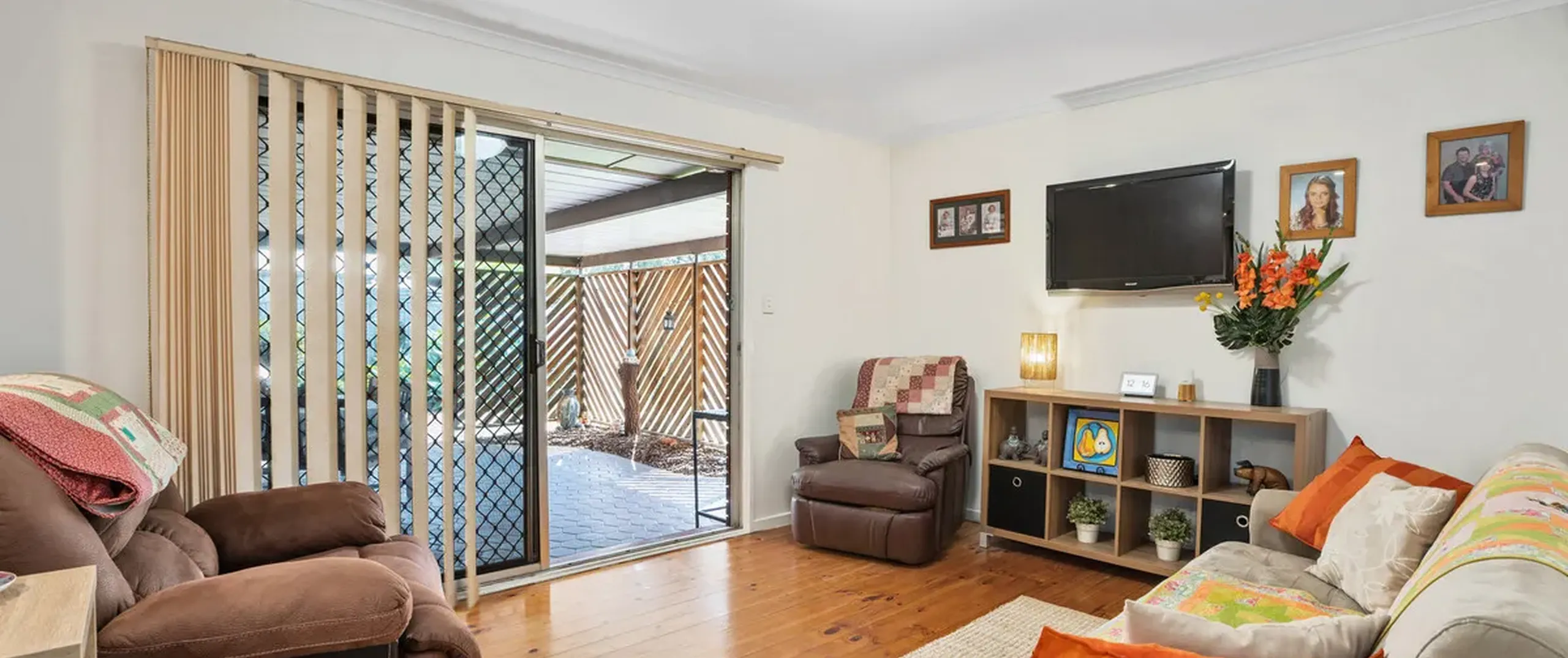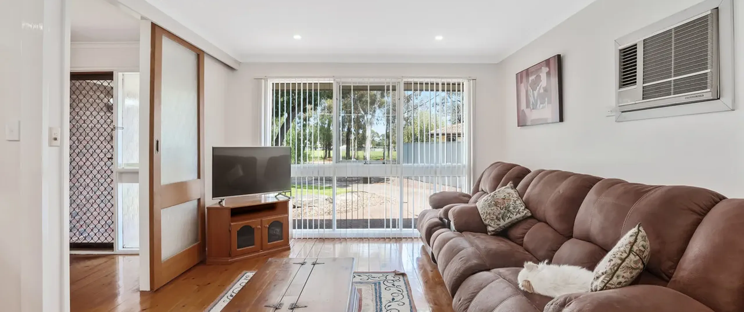 - Spacious lounge room with air conditioner and sliding door access to the verandah