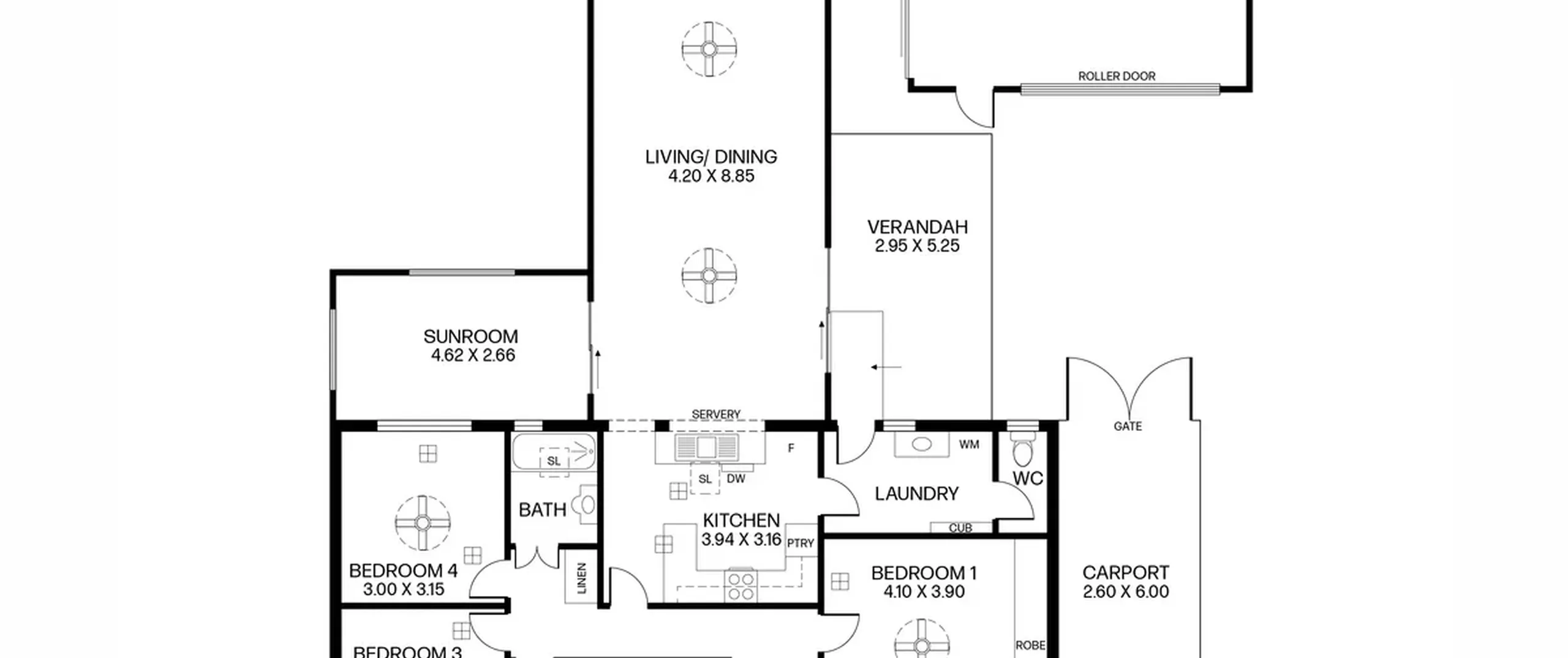 - Four spacious bedrooms all complete with ceiling fans, bedrooms one and three with built-in robes
