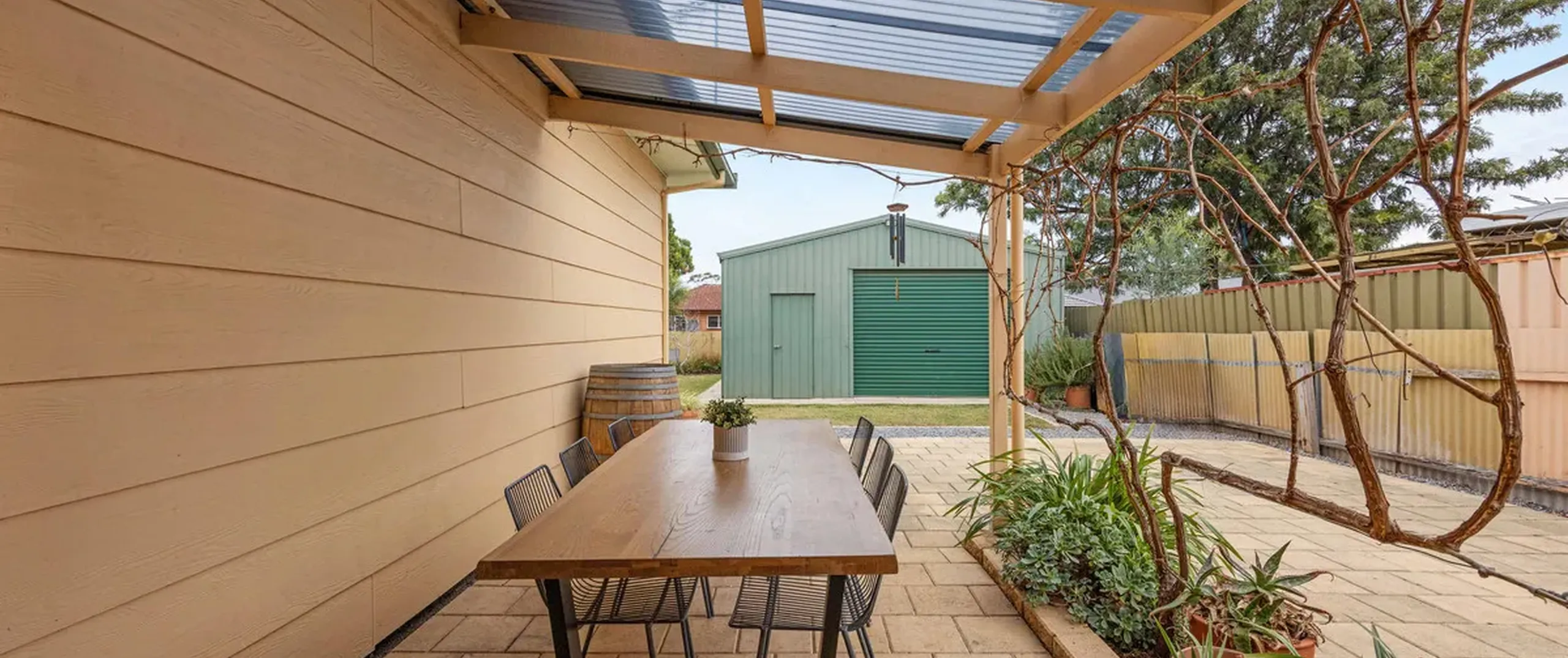 - Large shed/workshop with ceiling fans (6.10m x 9m)