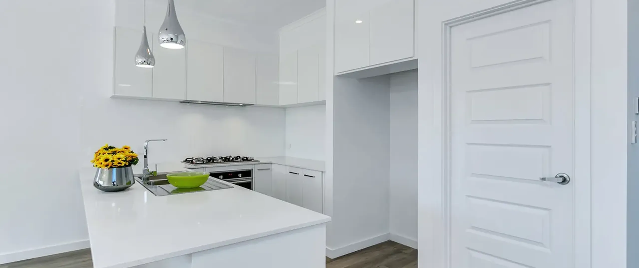 - Modern 2 pak gloss kitchen with quality stainless steel appliances, dishwasher, walk-in pantry, and Mirostone benchtop