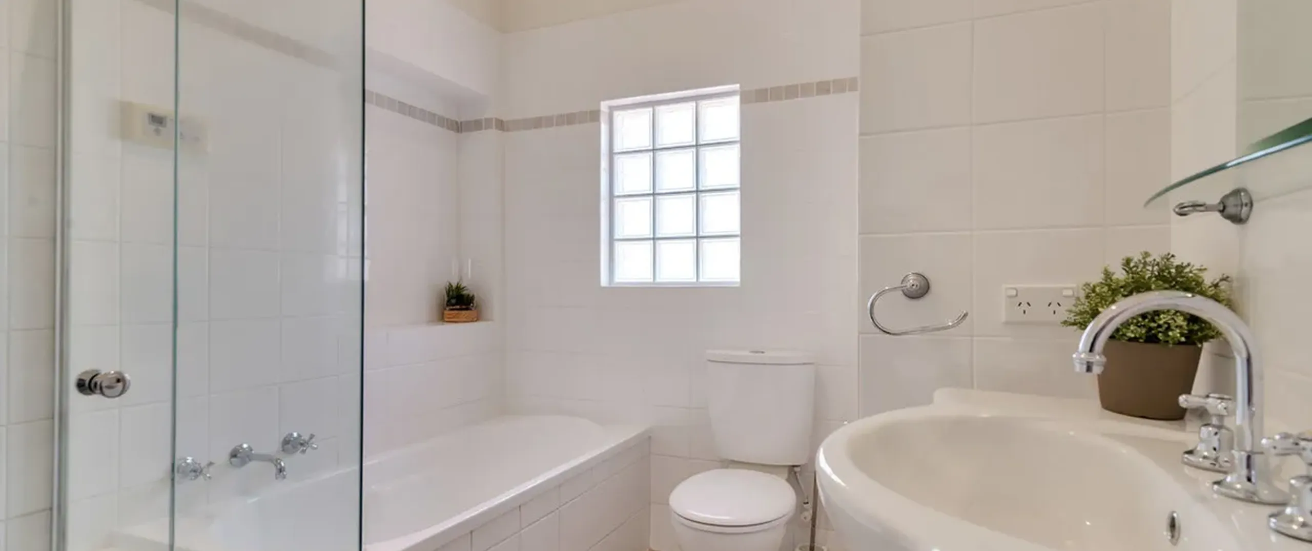 - Sparkling main bathroom with separate bath and shower