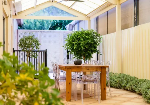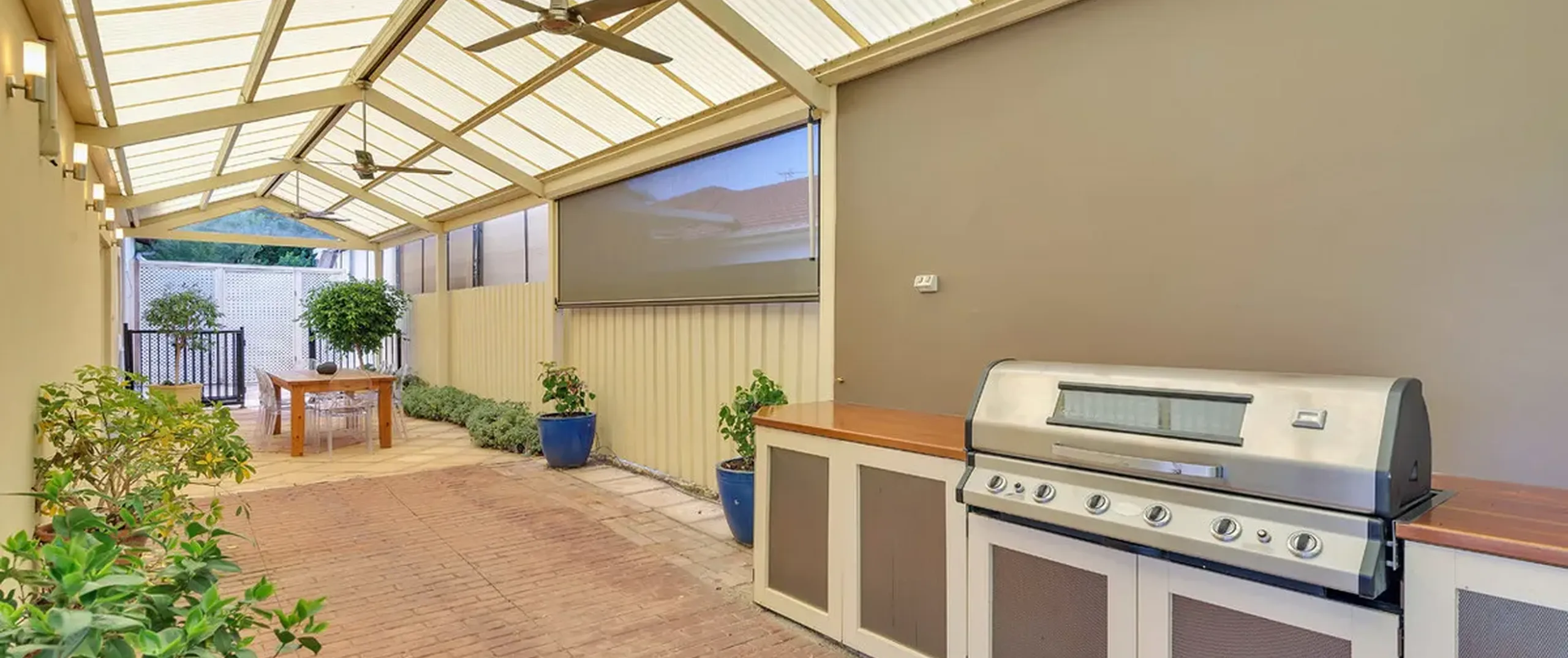 - Stunning undercover outdoor entertaining area with ceiling fans and built-in bbq