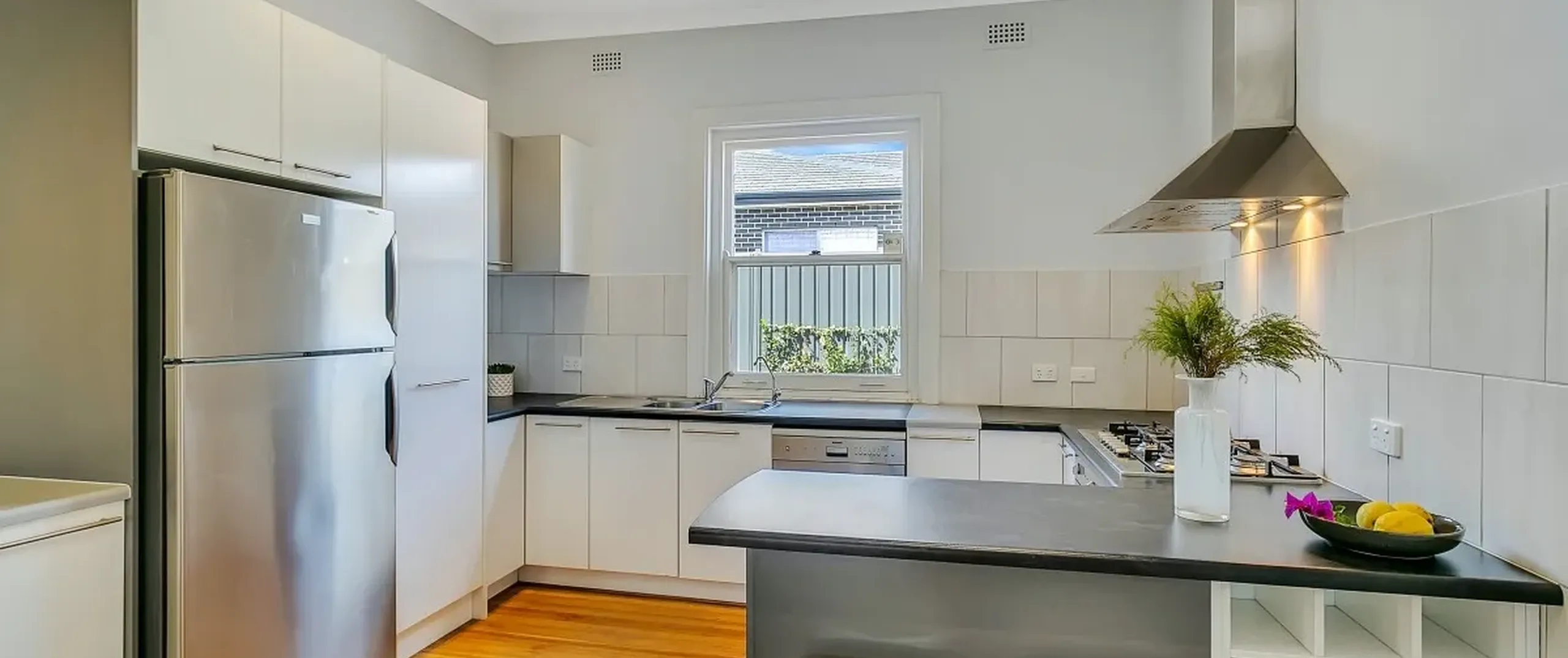 - Modern kitchen with gas cooktop, Blanco dishwasher and ample cupboard and bench space