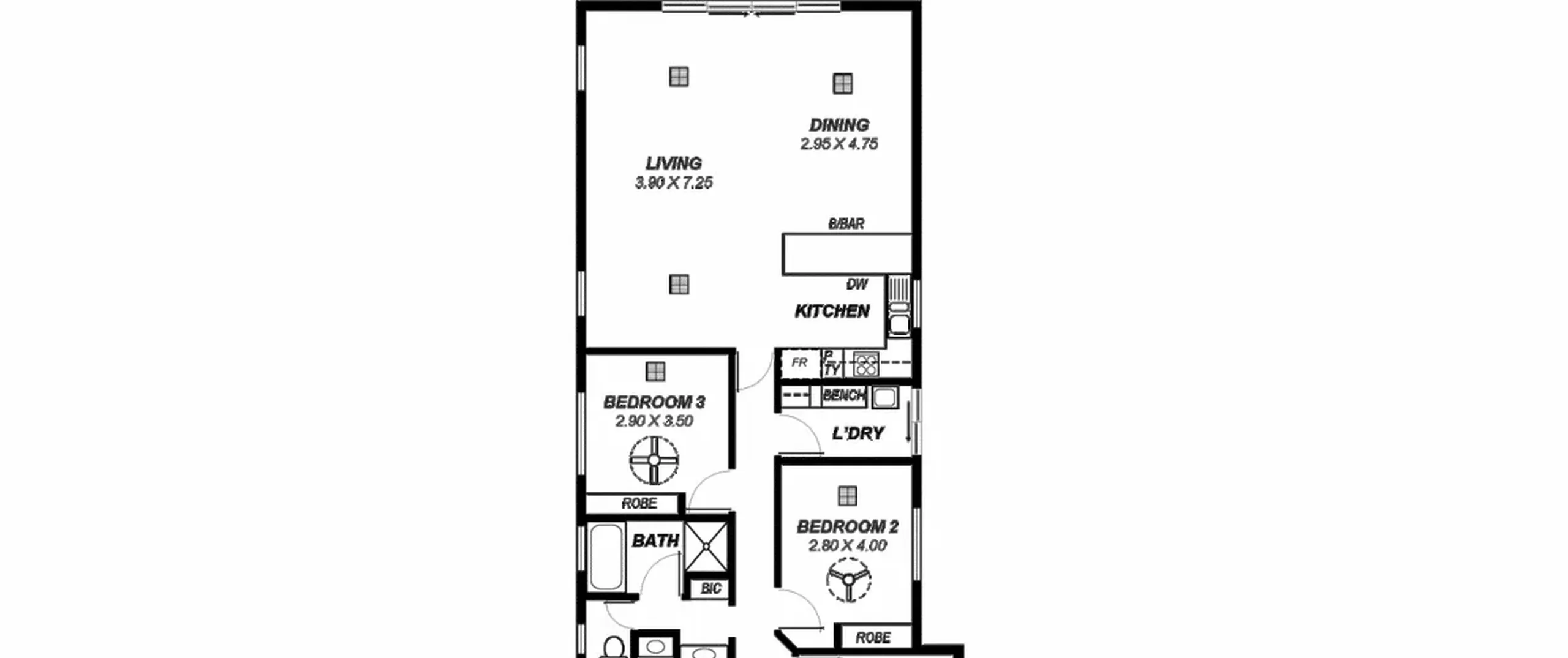 - Good sized bedrooms 2 and 3, both with ceiling fan and built-in robes