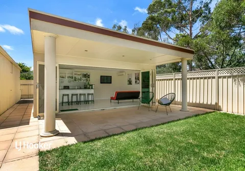 Positioned at the very front end of Broadview, adjacent Collinswood, its beautiful stone frontage only hints at what’s on offer. Delivering a Master bedroom with ensuite and 2 other generous bedrooms, the home opens out to a North facing light filled living area and stunningly elegant landscaped garden and undercover outdoor entertaining area. A surprise and delight comes by way of a 2nd living area consisting of a detached entertaining pavilion that offers a huge range of possibilities.