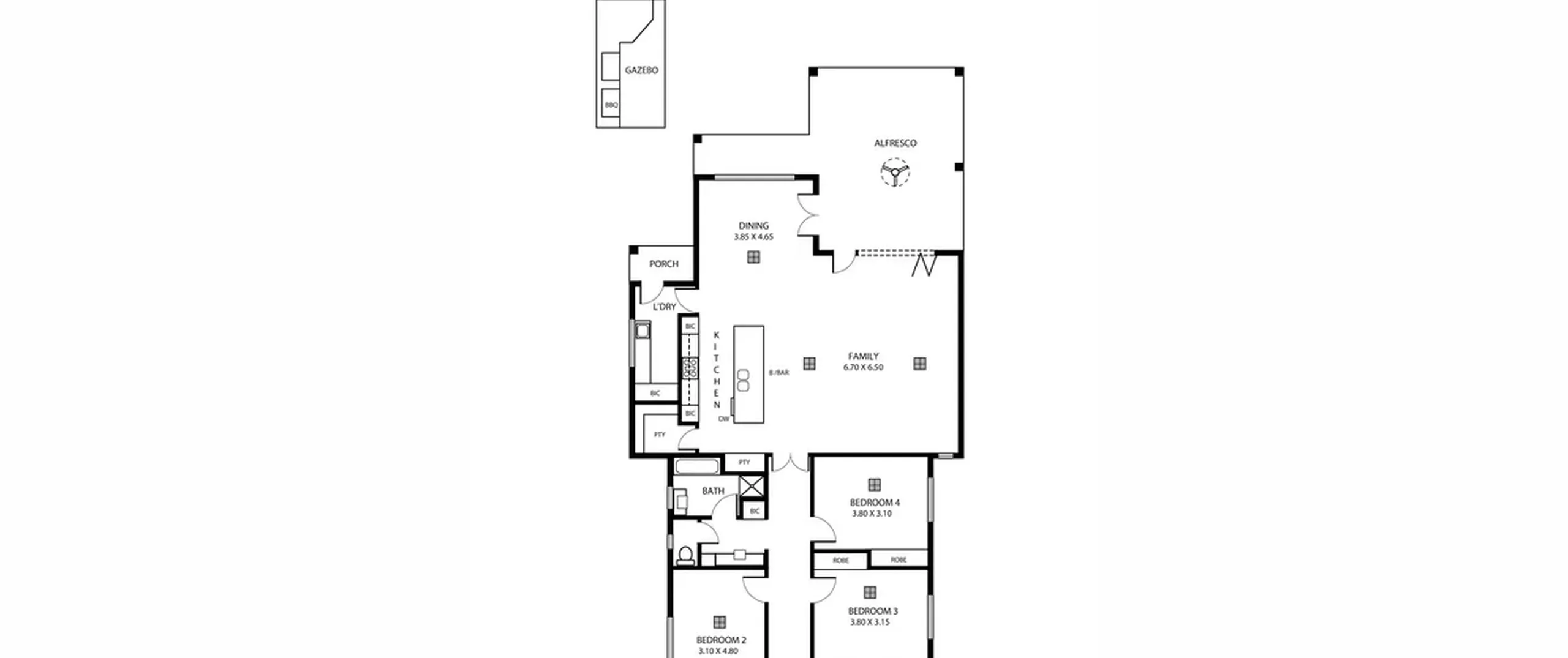 - Alfresco area under main roof with ceiling fan perfect for outdoor entertaining plus built-in BBQ and cooking area