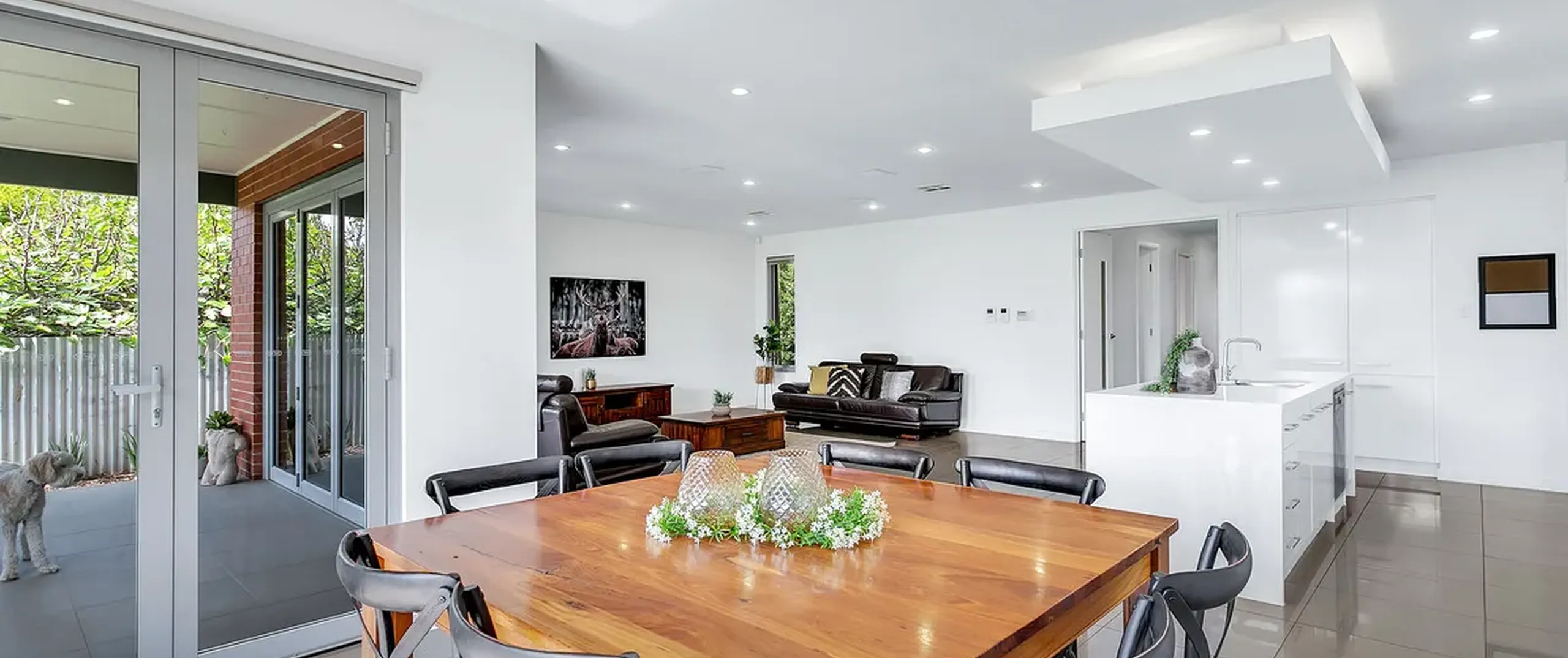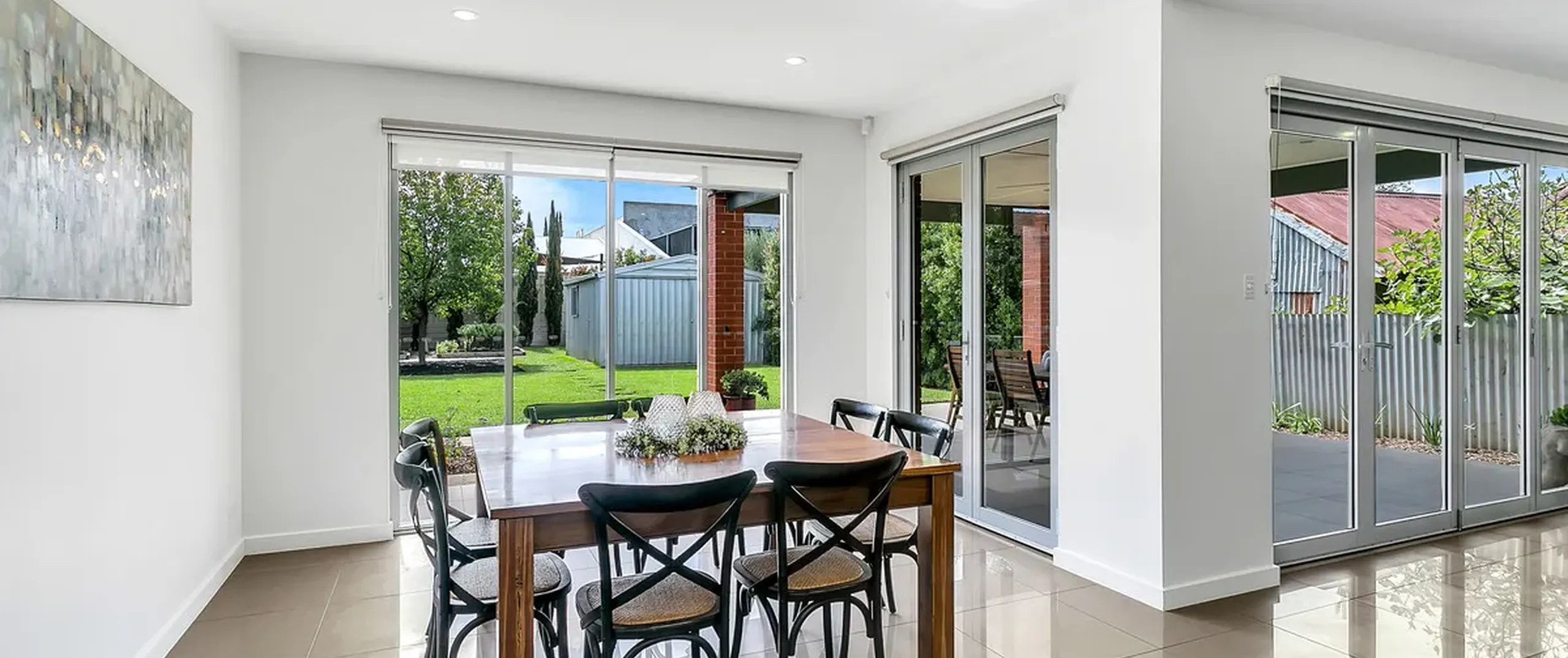 - Light filled dining area with French doors leading to the outdoor entertaining area