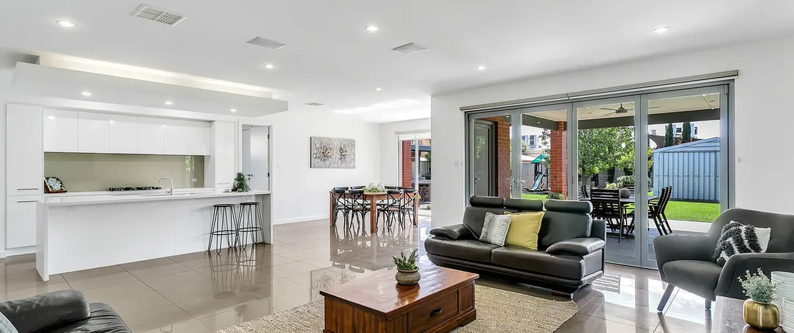 - Spacious, light filled, open plan family room with bi-fold doors leading out to the outdoor entertaining area