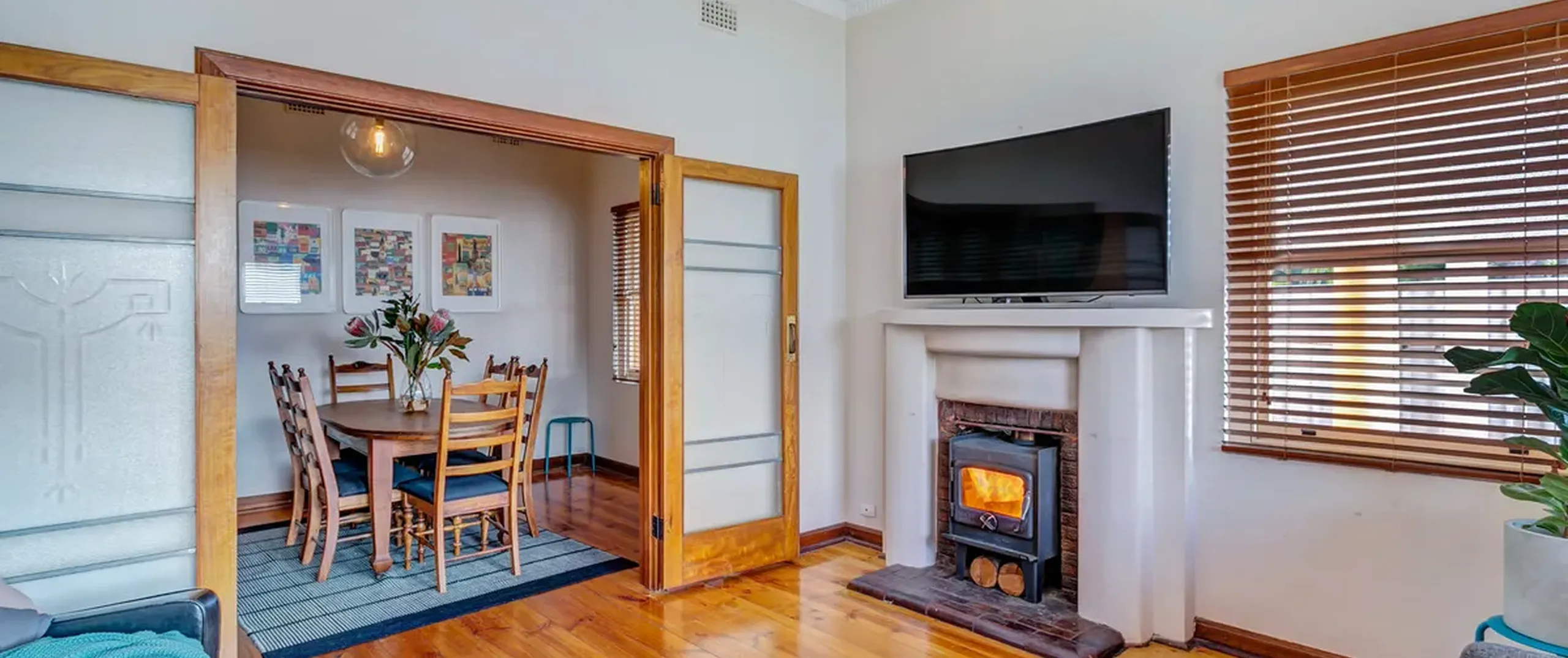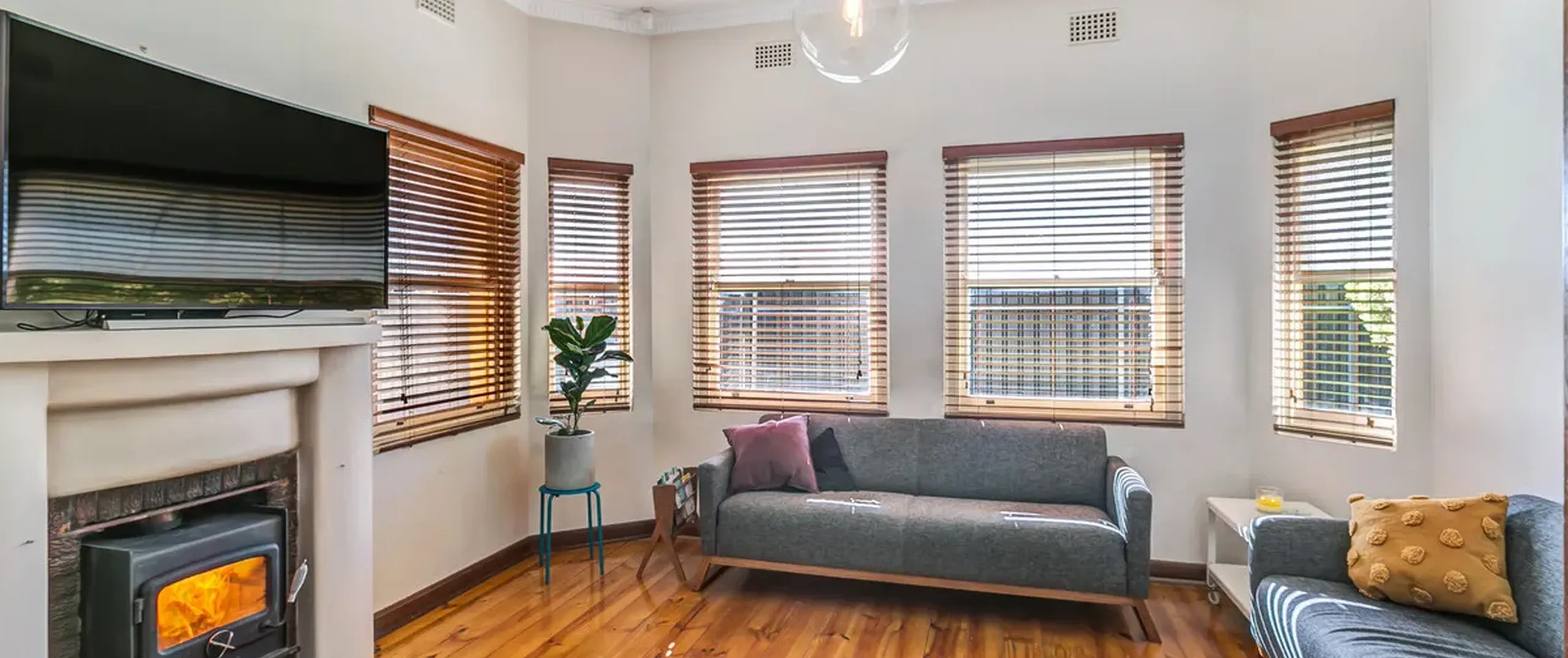 - Light filled living area with wood heater