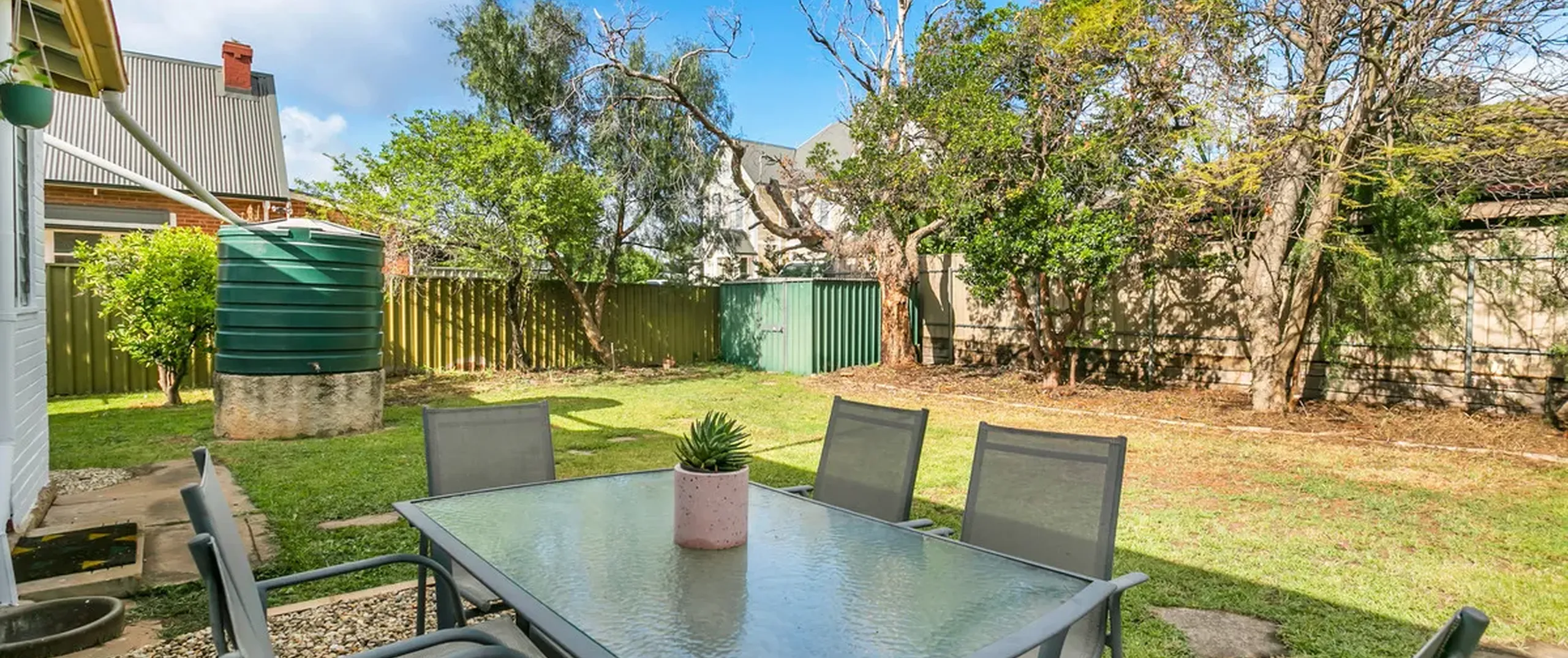 - Large rear yard with 2x garden sheds and rainwater tank