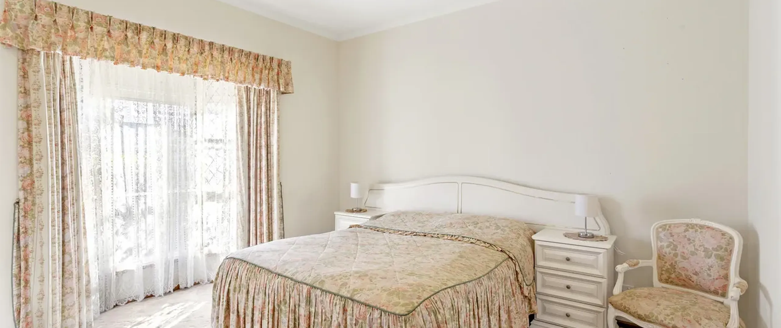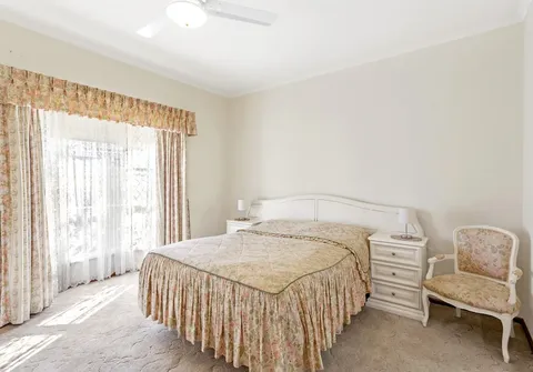 - Bedroom 1 with walk-in robe, ensuite, ceiling fan and large bay window, providing an abundance of natural light