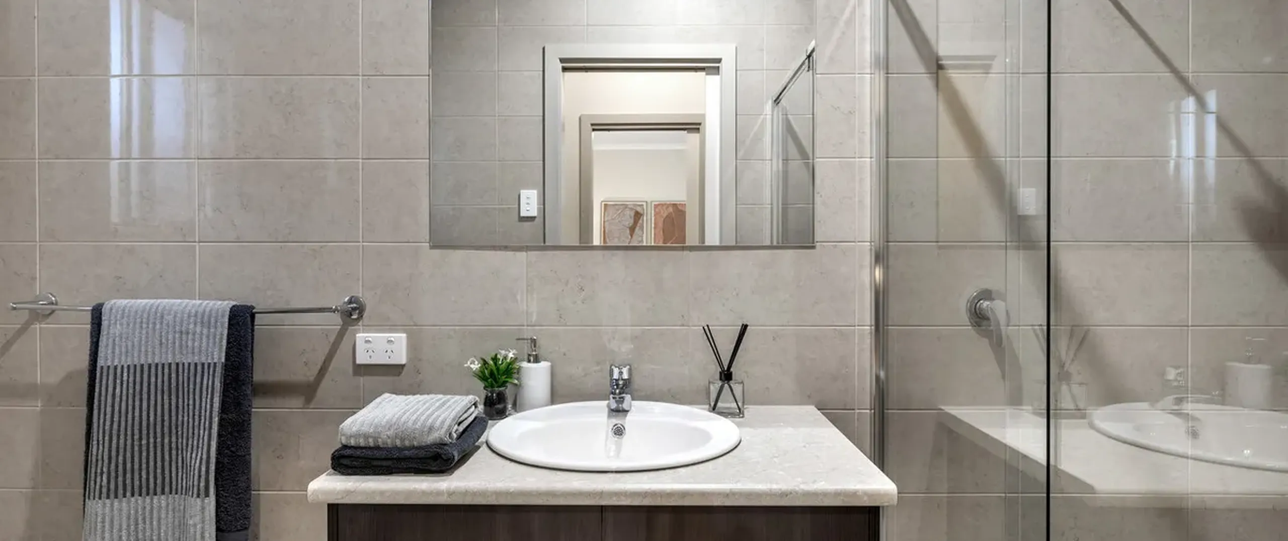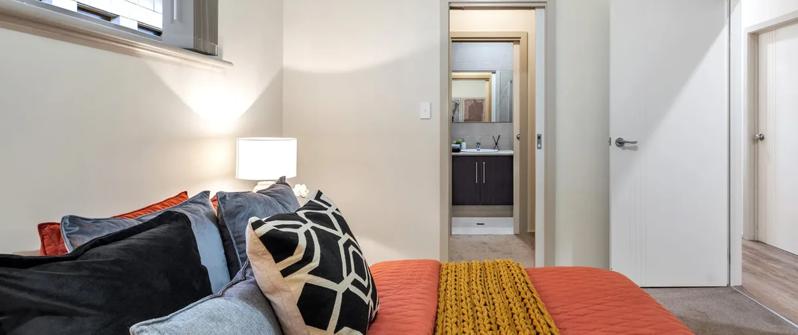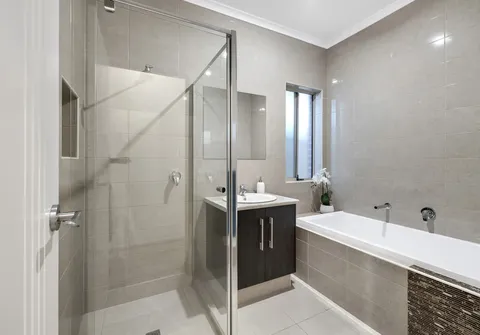 - Master bedroom with walk-in robe and ensuite, featuring floor to ceiling tiling