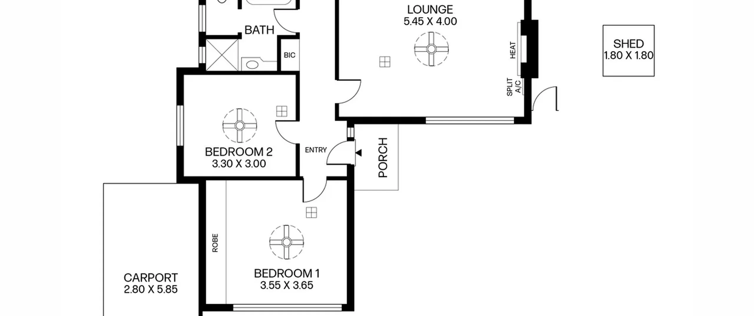 - Bedroom 2 with ceiling fan
