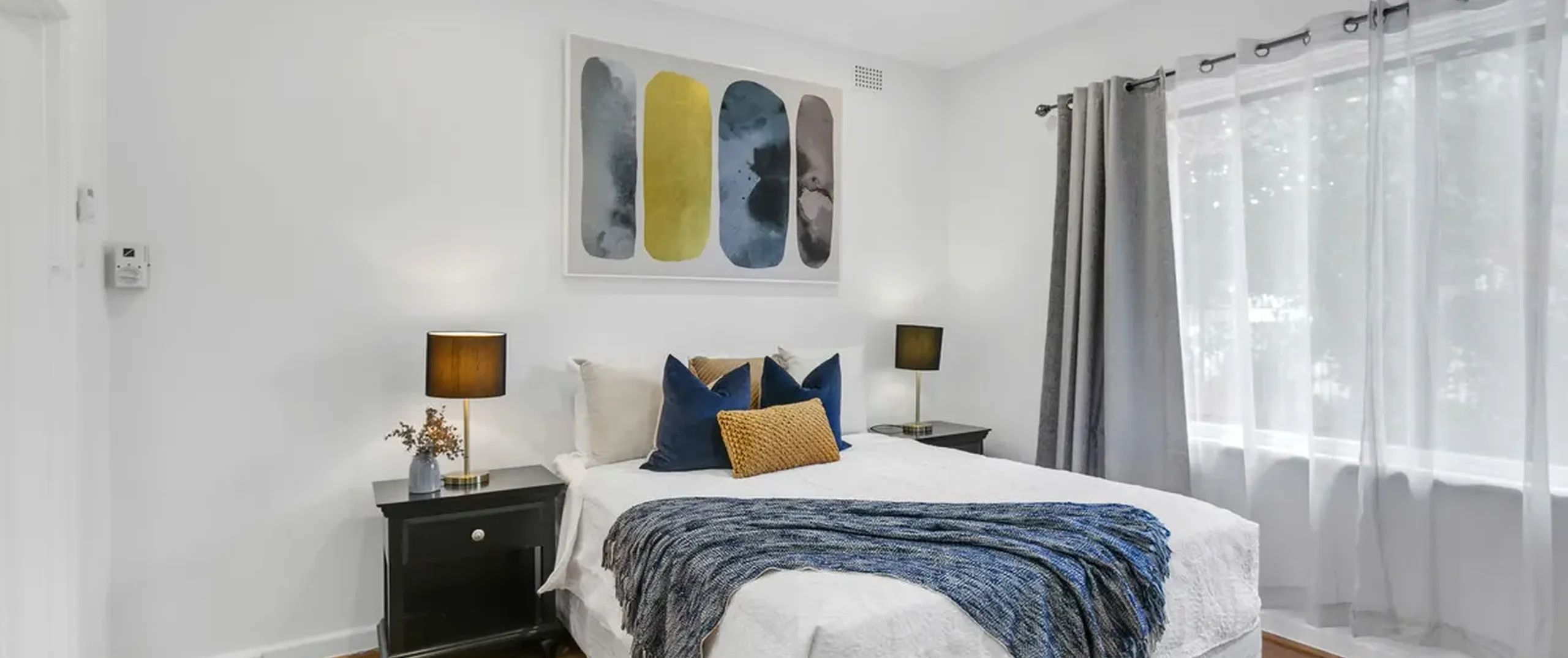 - Master bedroom with built-in robe and ceiling fan