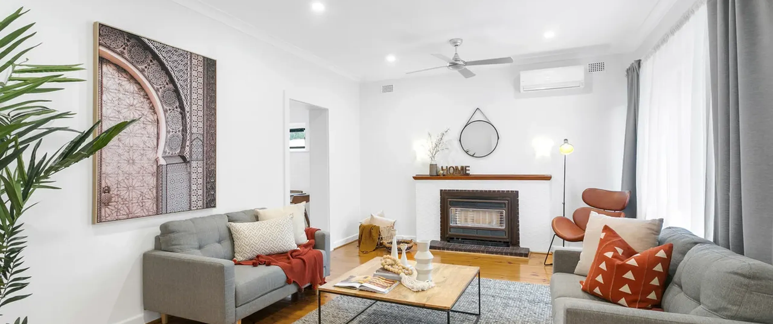 - Light filled lounge room with gas heater