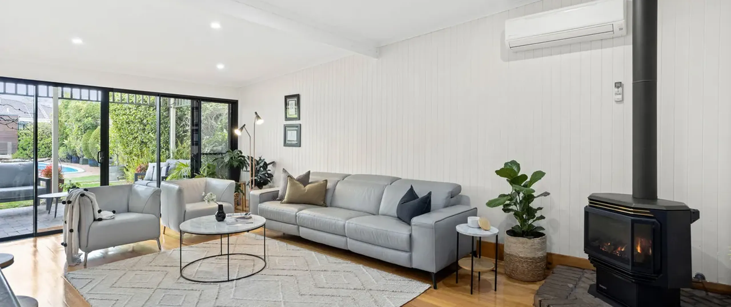 - Light filled lounge with feature gas fire and sliding door to outdoor entertaining