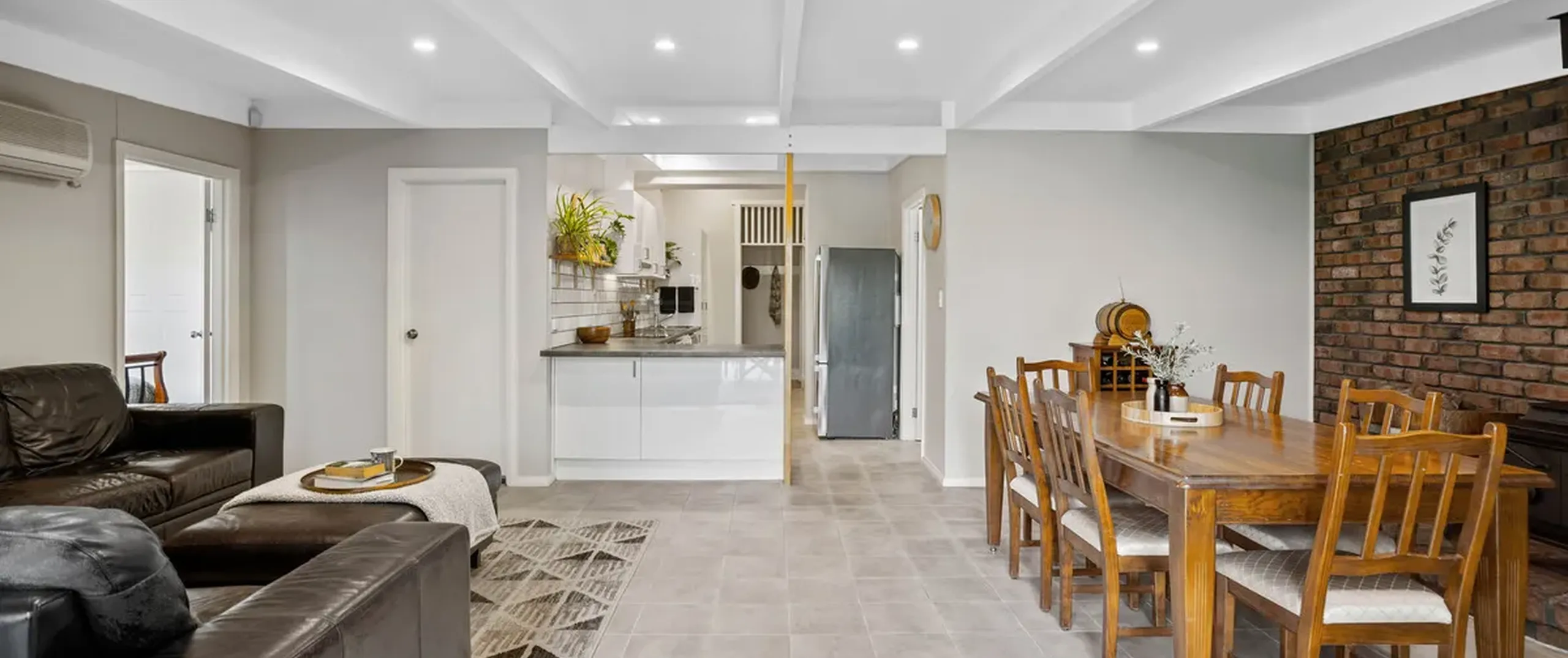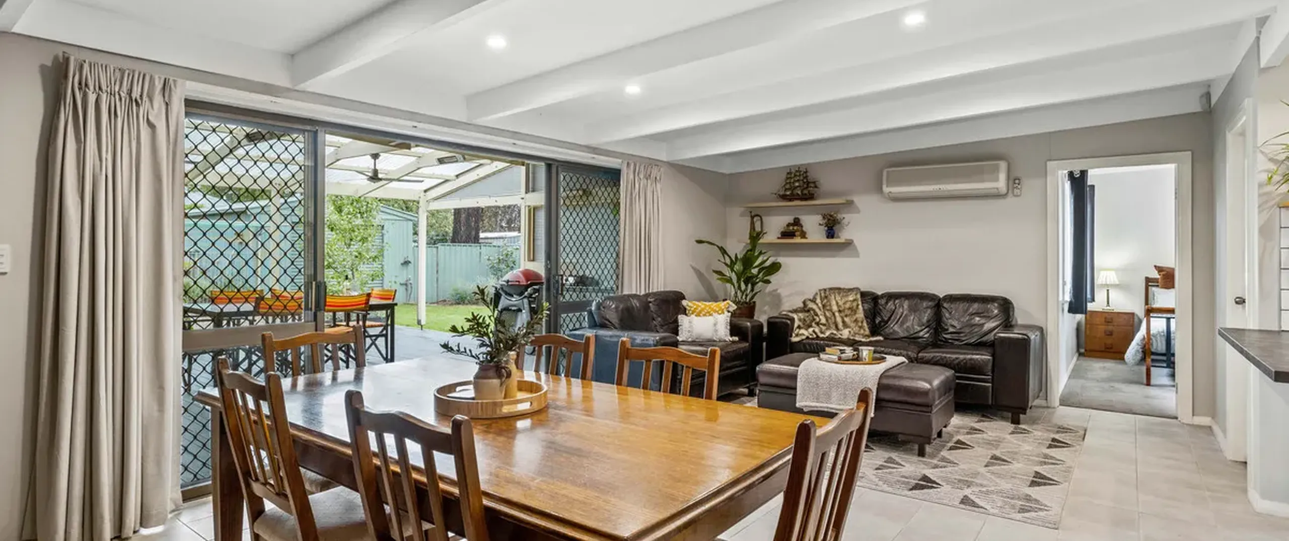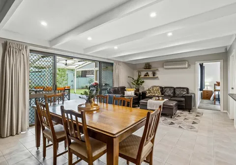 - Spacious open-plan family/dining room with split system air conditioner and combustion heater to enjoy in the cooler months