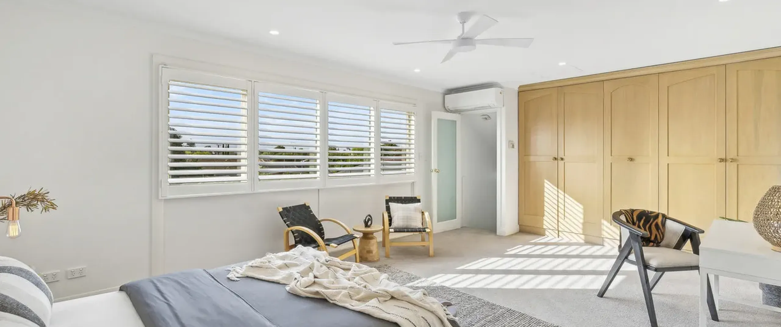 - Upper-level studio/fourth bedroom with built-in robe, split system air conditioner and ceiling fan