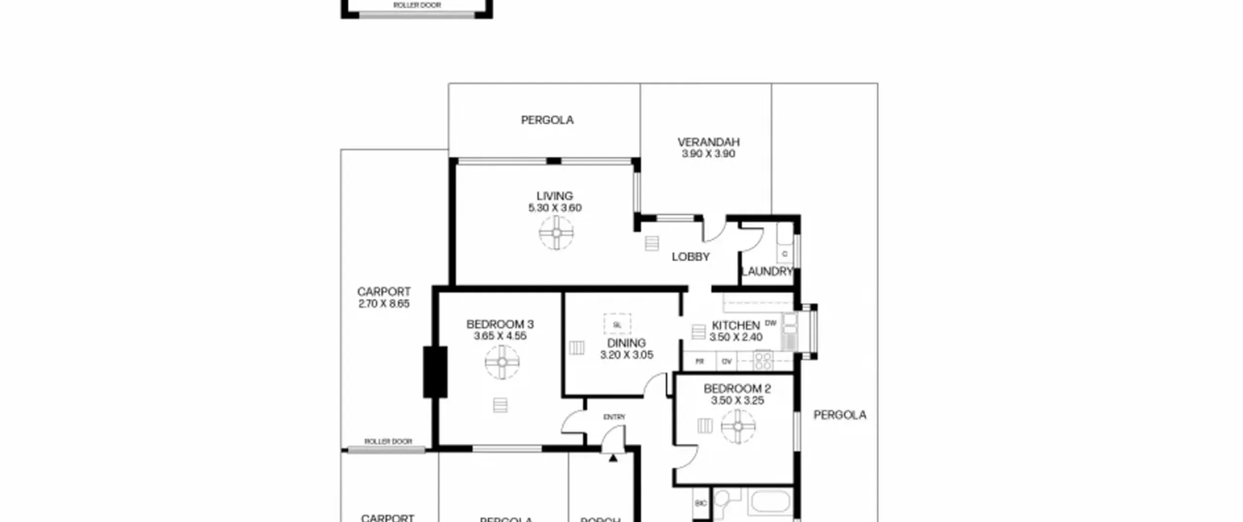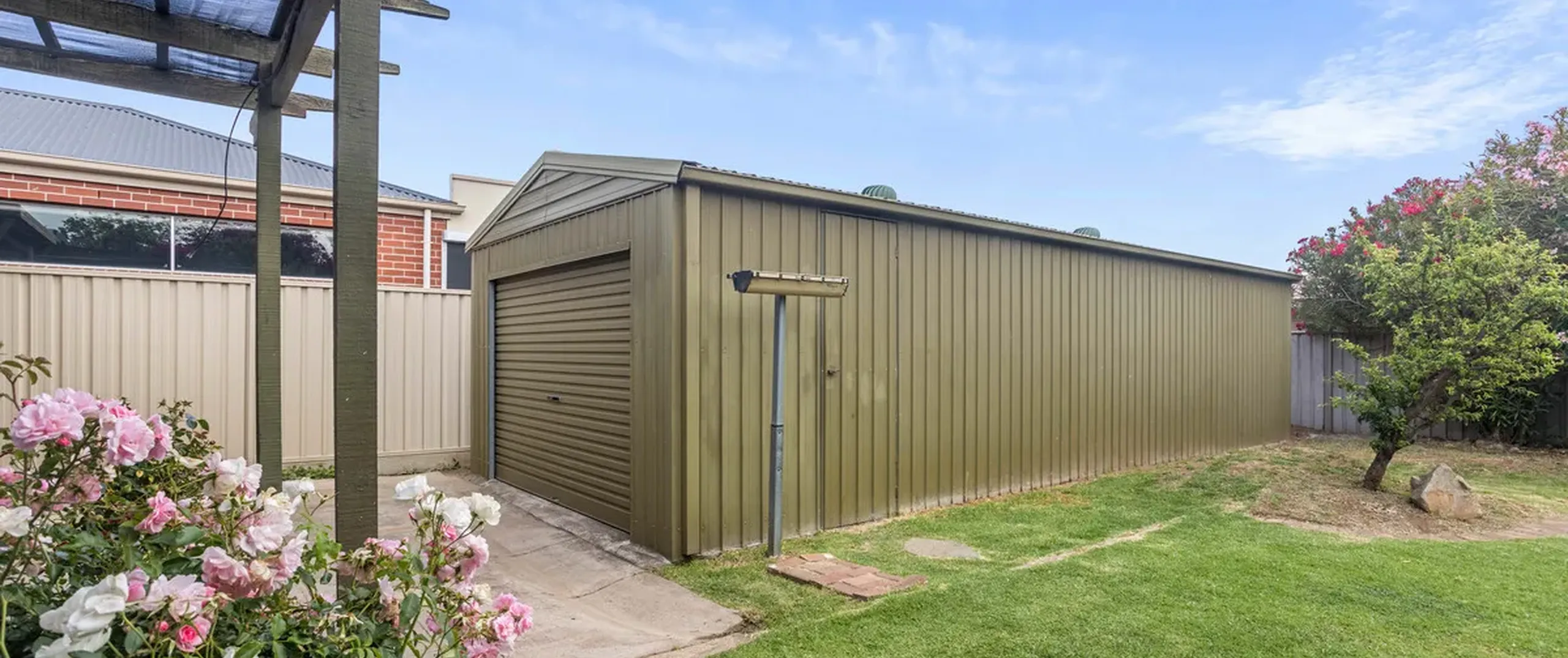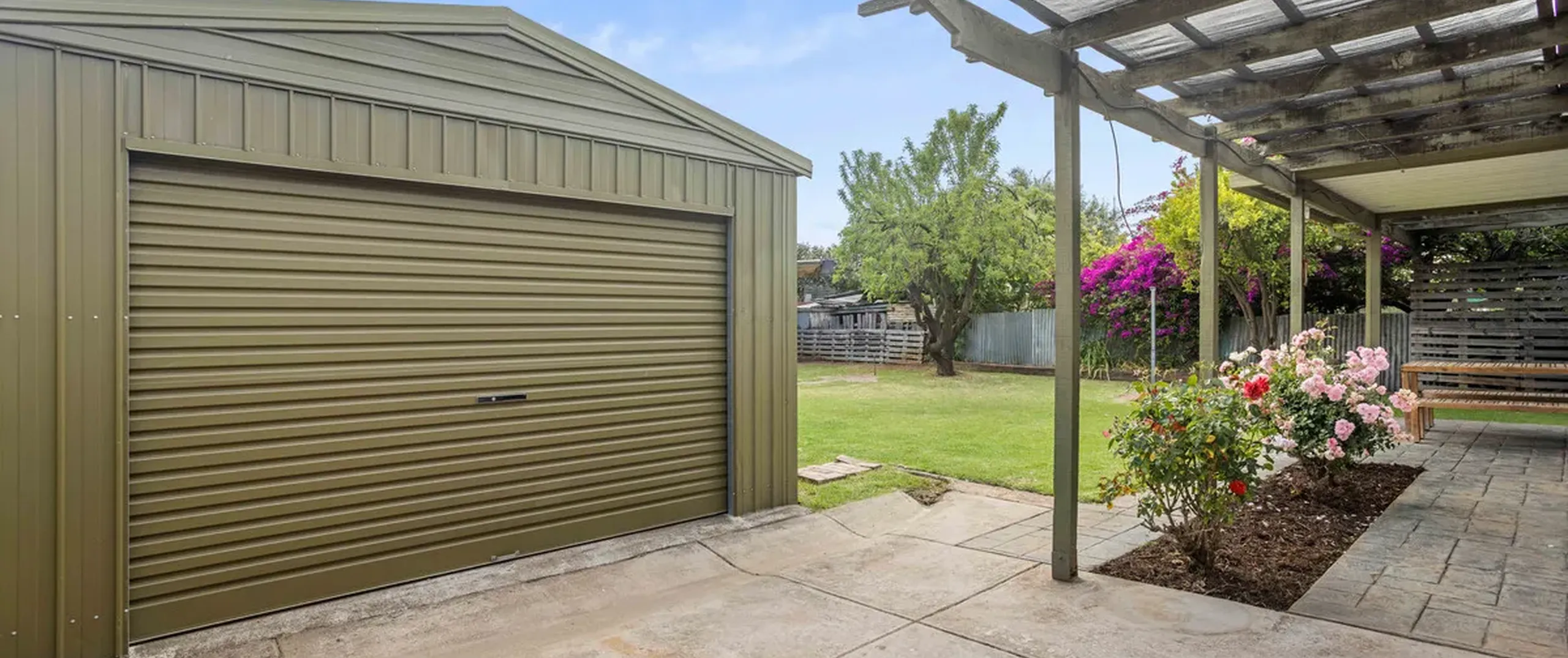 - Double length carport with roller door and drive through access to the garage