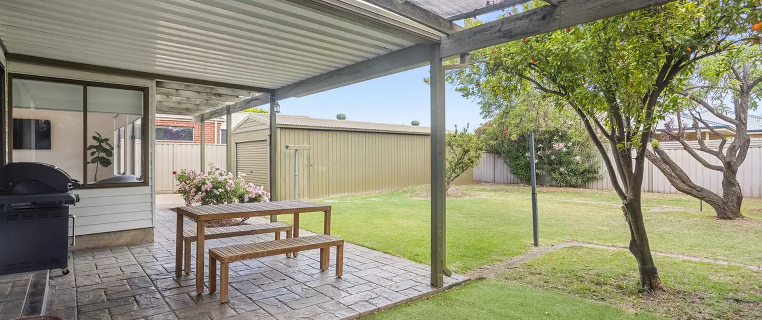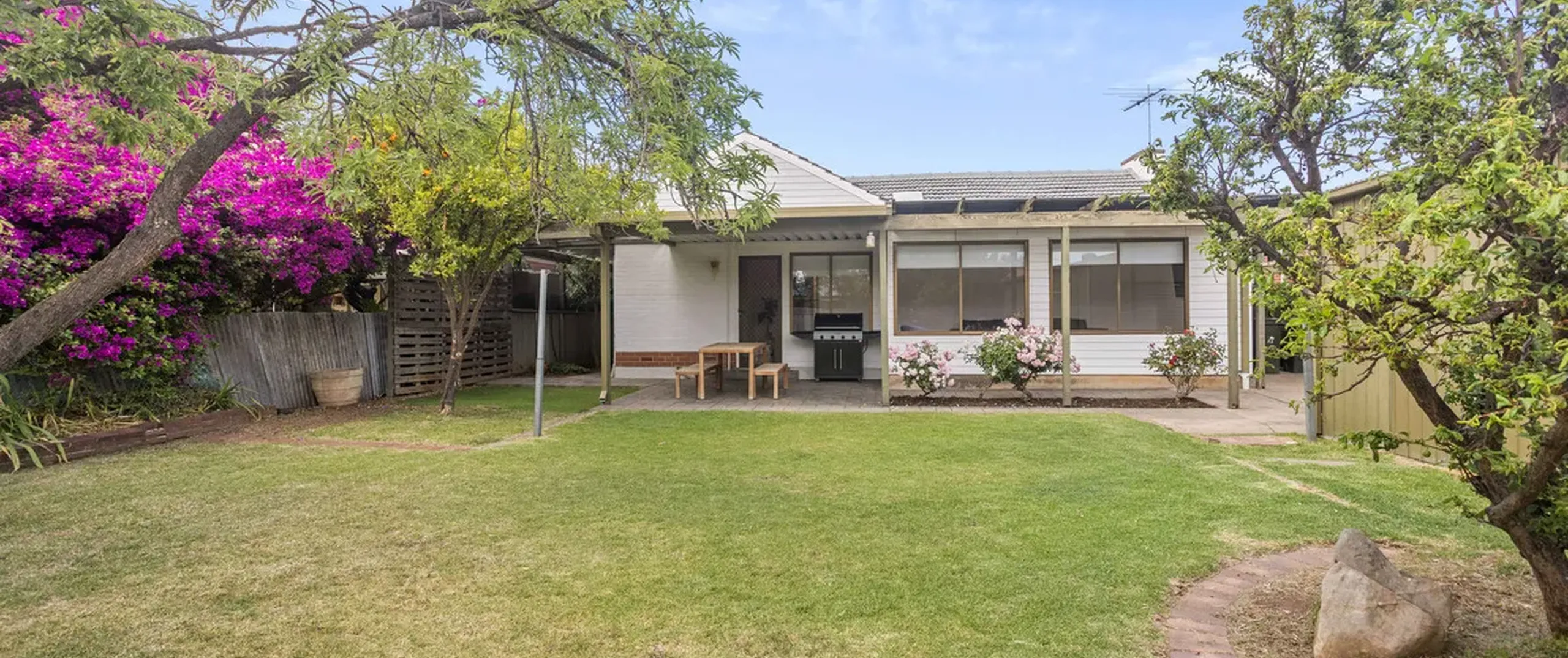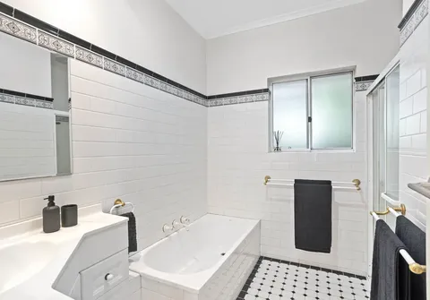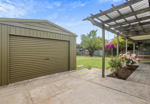 Offering 3 spacious bedrooms, heritage style bathroom and a large family sized living room at the rear with picture windows overlooking the garden. The expansive outdoor space provides an oasis of greenery and an undercover entertaining area, perfect for hosting alfresco gatherings or simply unwinding in a peaceful setting.