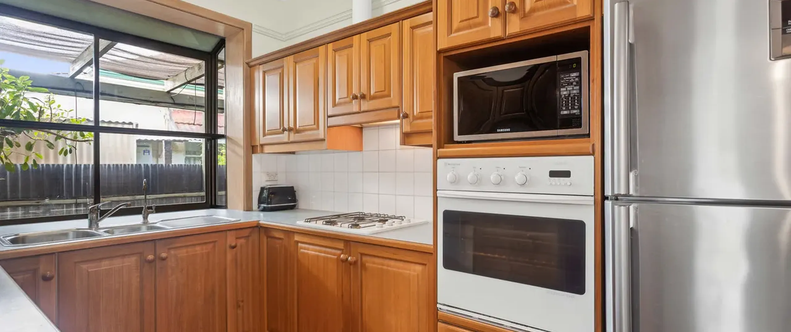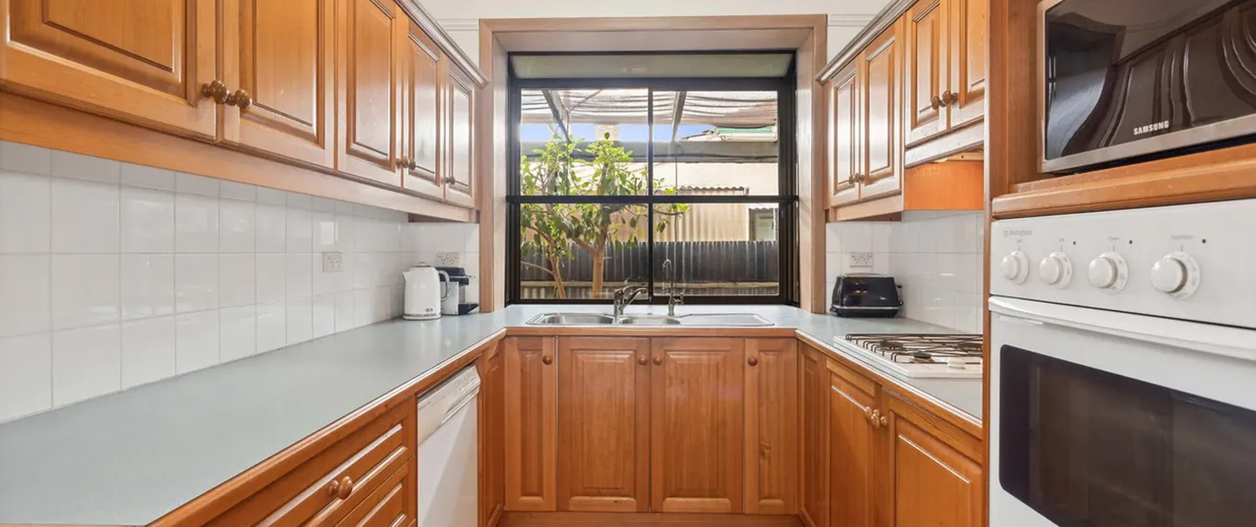 - Timber kitchen with ample bench and cupboard space